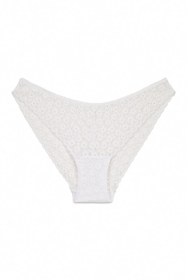 Braga clásica de encaje floral, confeccionada en tejido delicado y resistente. Diseño tradicional que ofrece cobertura completa y confort. Ideal para usar bajo vestidos o faldas.