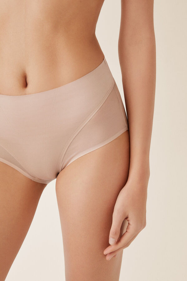 Braga de tiro medio moldeadora en un clásico color nude. Con detalles de tul que le aportan originalidad, esta pieza es todo un básico que no debe faltar en tu cajón de la ropa interior. Además, gracias a su efecto moldeador, notarás cómo tu cuerpo se ve más realzado y estilizado. ¿A qué esperas? ¡Recuerda! Siempre puedes combinarla con cualquiera de nuestros sujetadores a juego para crear un look íntimo de escándalo.