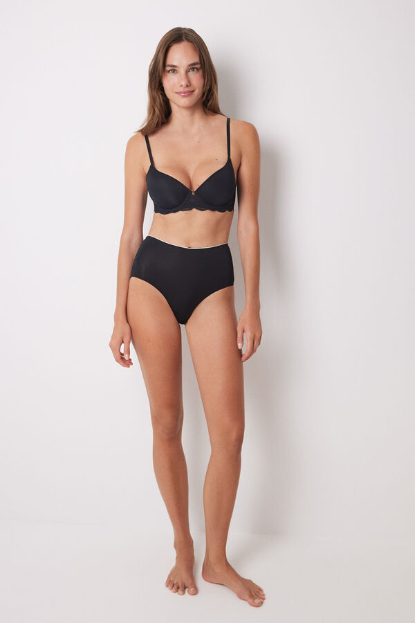 Braga de control moldeadora con efecto reductor en color negro. Estiliza tu silueta y es perfecta para llevar bajo las prendas que más se ciñen al cuerpo. Combina con la parte de arriba que más te guste.