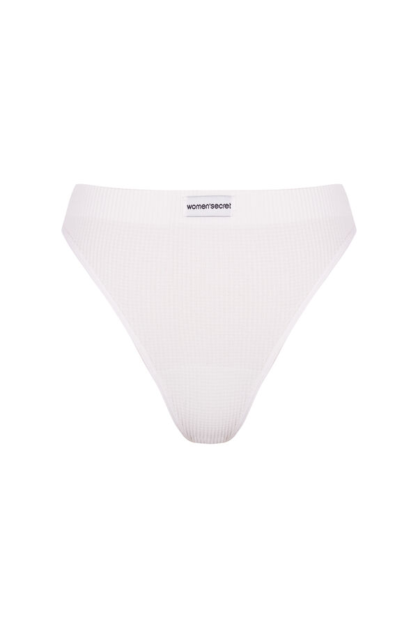 Braga tanga sin costuras con tejido de estructura de cuadrillé. Diseñada para ofrecer máxima comodidad y suavidad. Detalle de etiqueta decorativa a tono con el logo para un toque elegante.