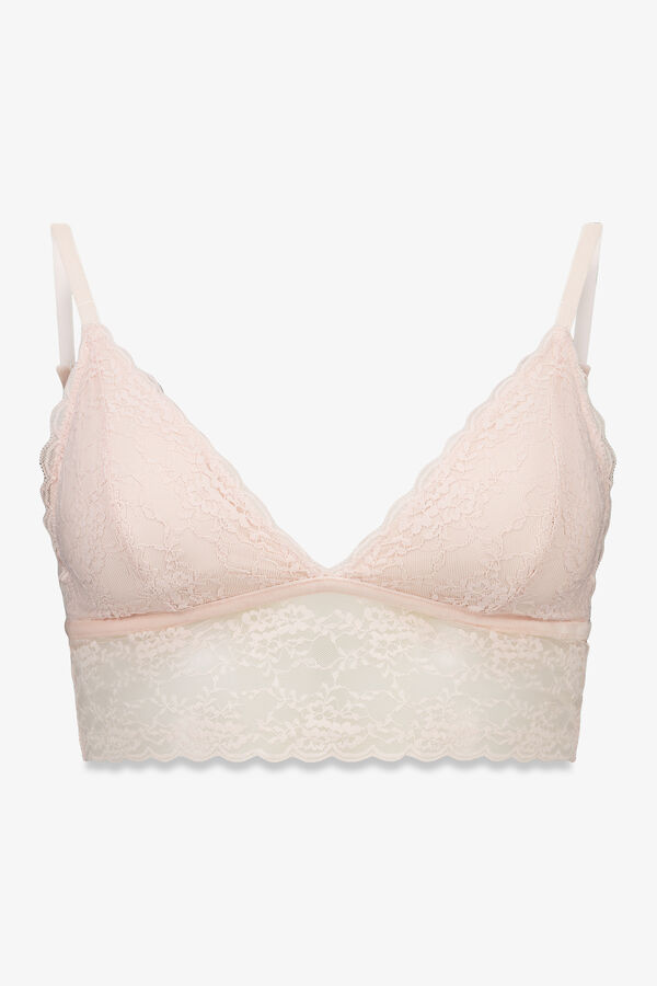 Sujetador triangular LOVELY, tipo bralette, con copa extraíble y sin aro, un modelo ideal para las amantes de la comodidad sin renunciar a la sujección. Precioso y delicado diseño confeccionado con tejido de encaje y con detalle de tirantes en velvet.