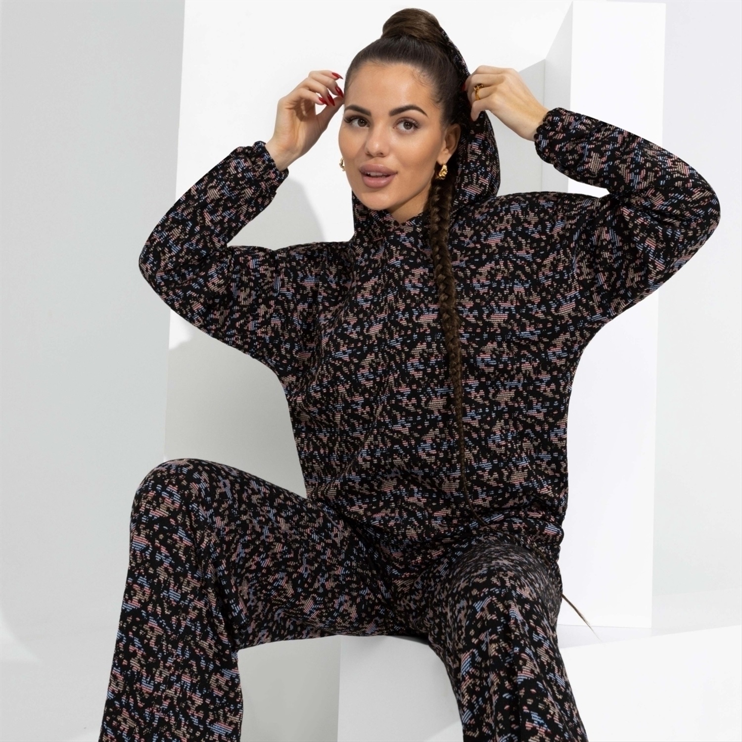 Состав: Трикотаж «люрекс» (100% полиэстер) Плотность ткани: Средняя Тип ткани: Трикотаж Вид застежки: Нет Дополнительный цвет ткани: Разноцветный Карманы: В боковом шве Основной цвет ткани: Черный Отрезная талия: Нет Подклад: Нет Резинка по талии: Нет Рисунок/раппорт: Каждое изделие уникально из-за расположения рисунка на ткани Сезон: Демисезон Силуэт: Свободный Стиль: Повседневный Параметры модели на фото: