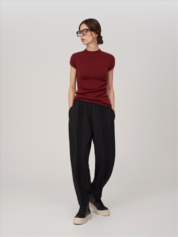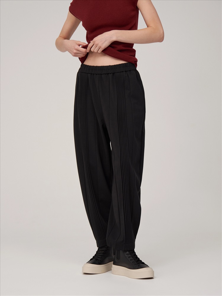 Видео: https-//hassfashion.ru/upload/iblock/941/n1bhgna43tlecnqi8iye9qvspz73gclf.mp4 осень-зима 95% Хлопок, 5% Спандекс Брюки зауженного к низу силуэта. По поясу мягкая резинка. По бокам — карманы. По передней части изделия, с правой и левой стороны расположены вертикальные застроченные складки. Ткань — хлопок с добавлением спандекса, что обеспечивает комфорт и долговечность.