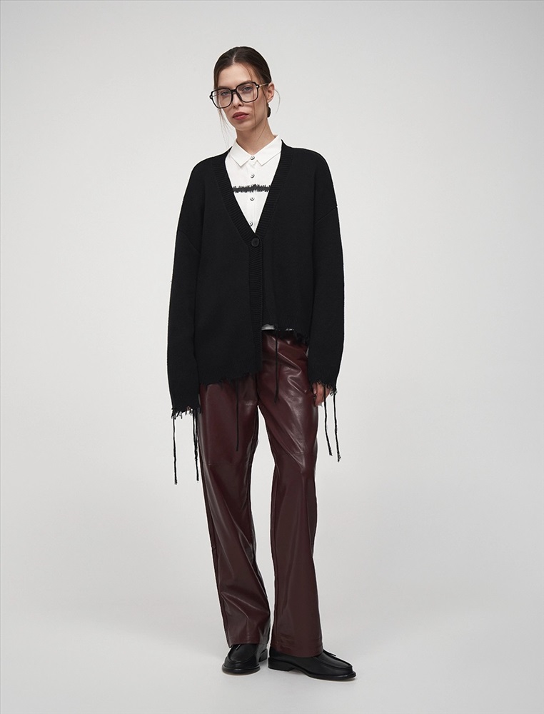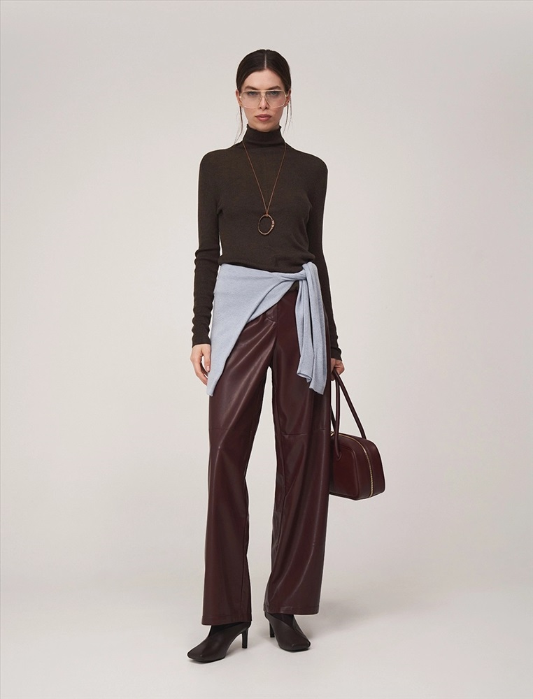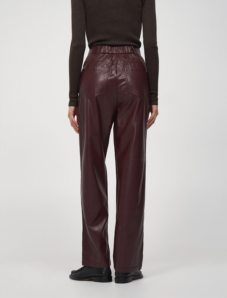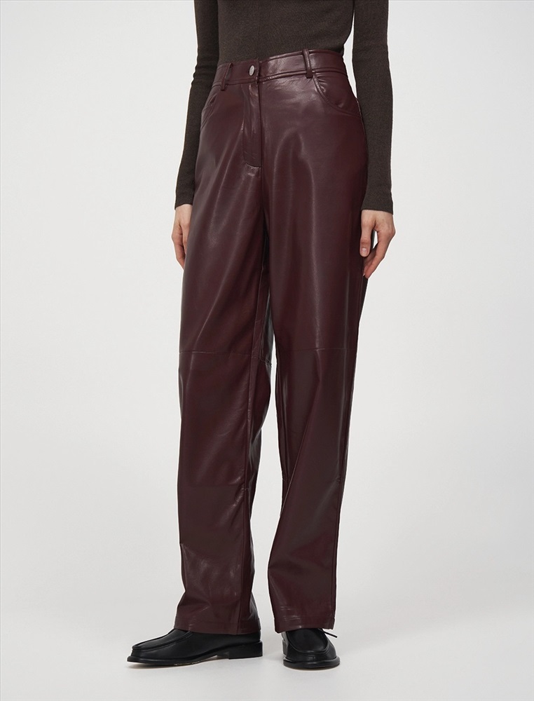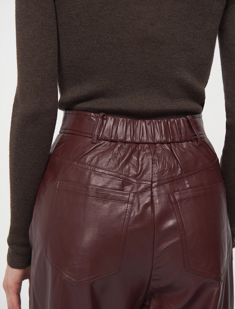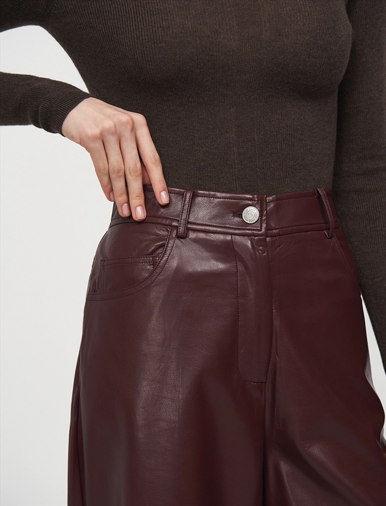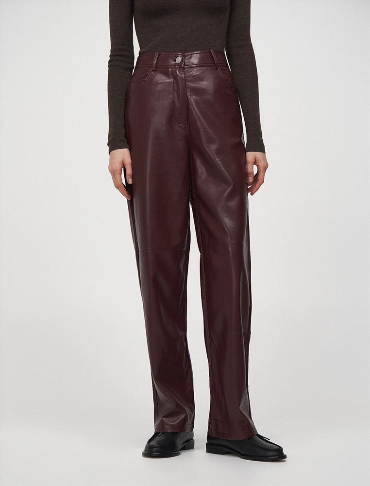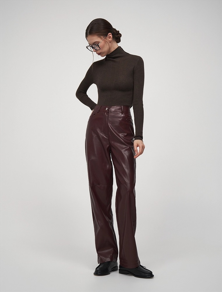 Видео: https-//hassfashion.ru/upload/iblock/302/tcbvo210tm7boduml4bpuho6125disqa.mp4 осень-зима 55% Хлопок, 45% Эко-кожа Брюки прямого силуэта с посадкой на уровне талии. Спереди классический гульфик и застежка на молнию. По бокам врезные карманы. По поясу шлевки. Сзади кокетка и накладные карманы. Ткань верха выполнена из экокожи, а изнанка из хлопка. Представлены в благородном бордовом оттенке.
