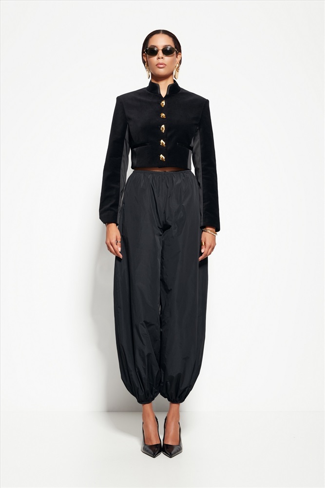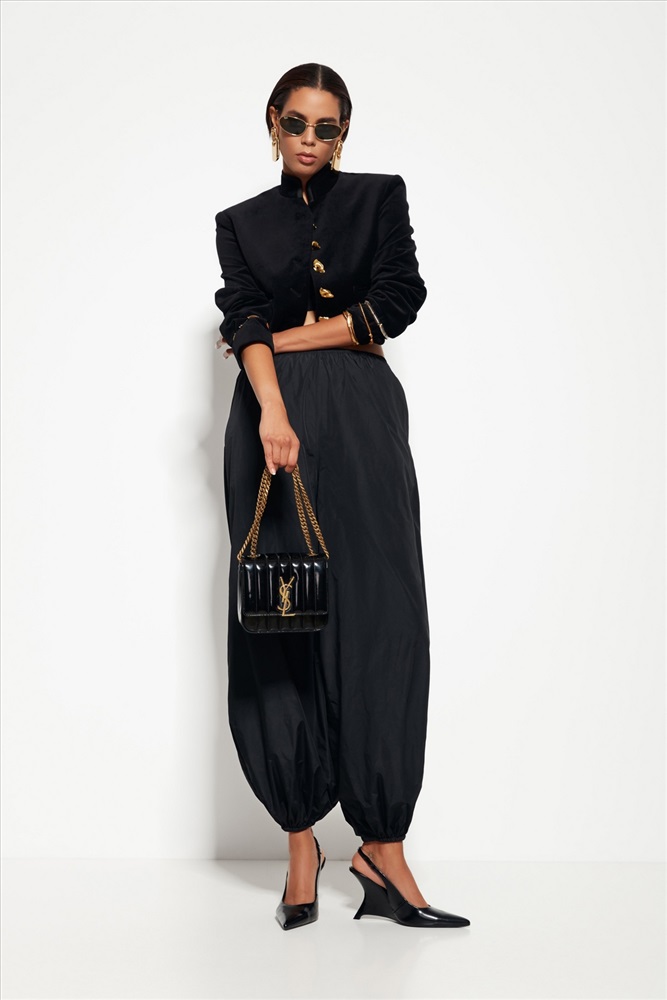 Брюки из коллекции Party 2026 — стильная и модная интерпретация классических восточных силуэтов. Модель свободного кроя с мягкими драпировками и зауженным низом создаёт утончённый, динамичный образ, идеально подходящий для торжественных и праздничных мероприятий.