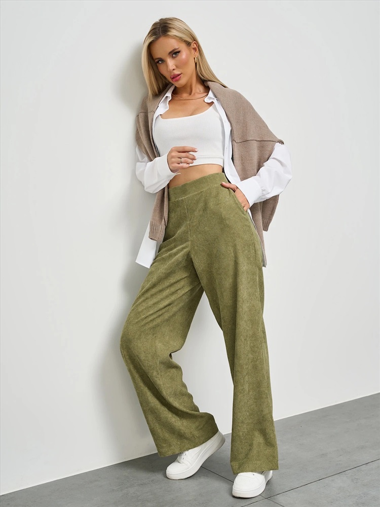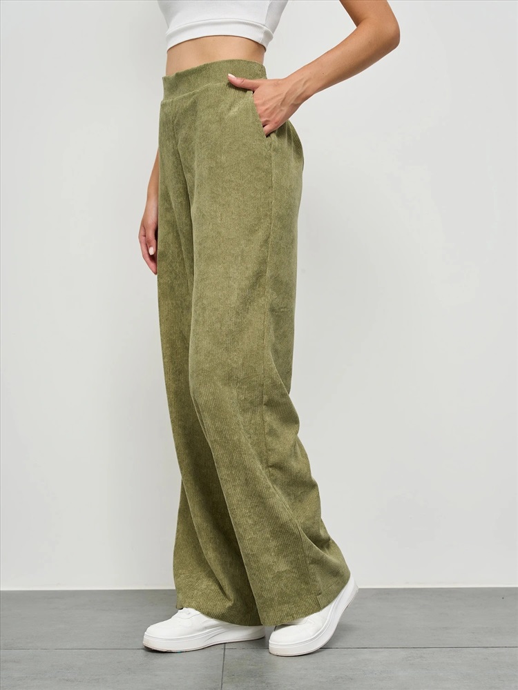 Прямые брюки  с карманами. Сзади пояс на резинке.