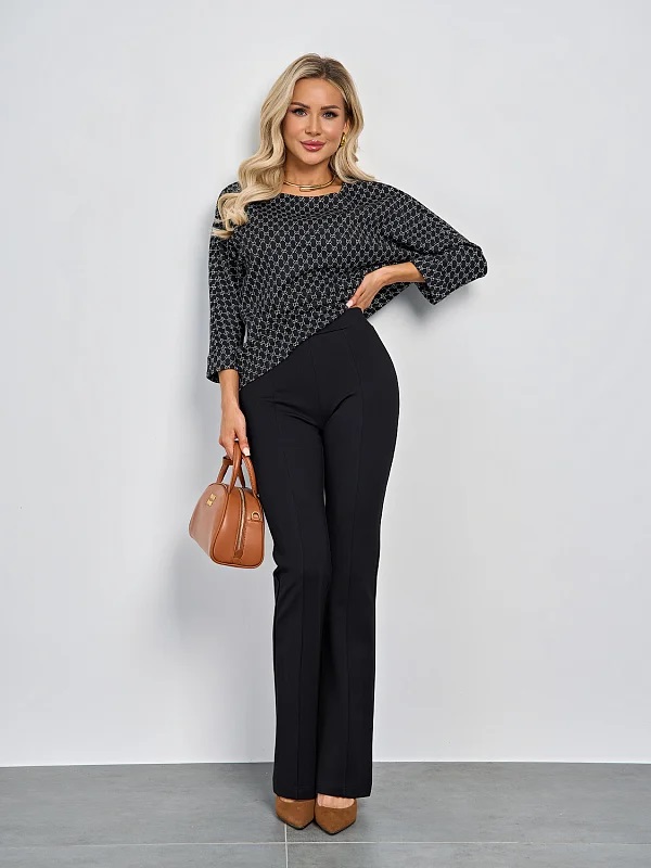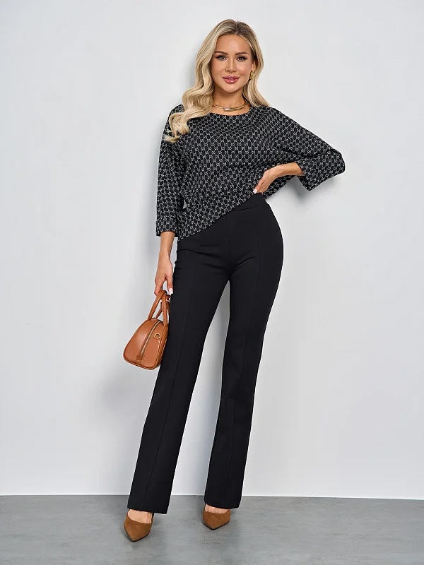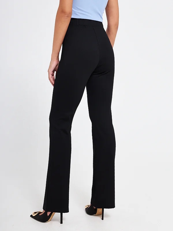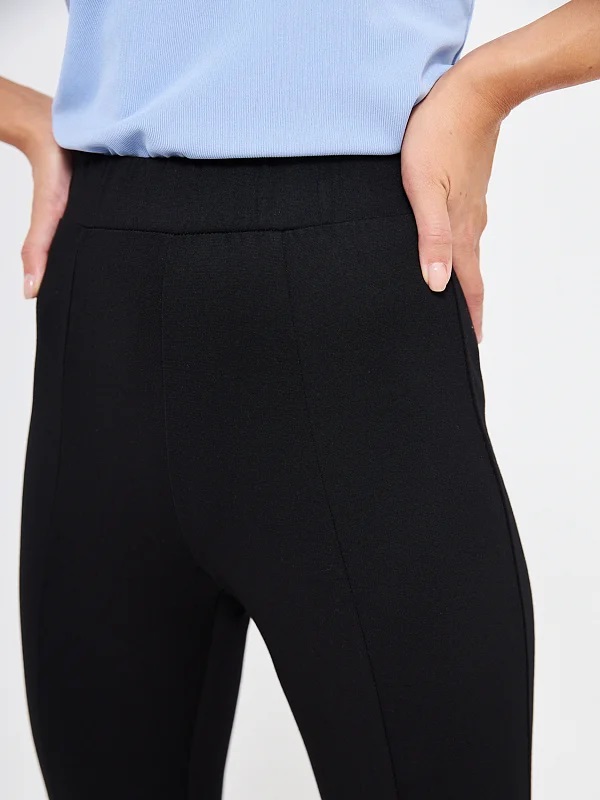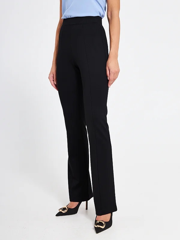 Трикотажные брюки с притачным поясом на резинке из плотного трикотажа.