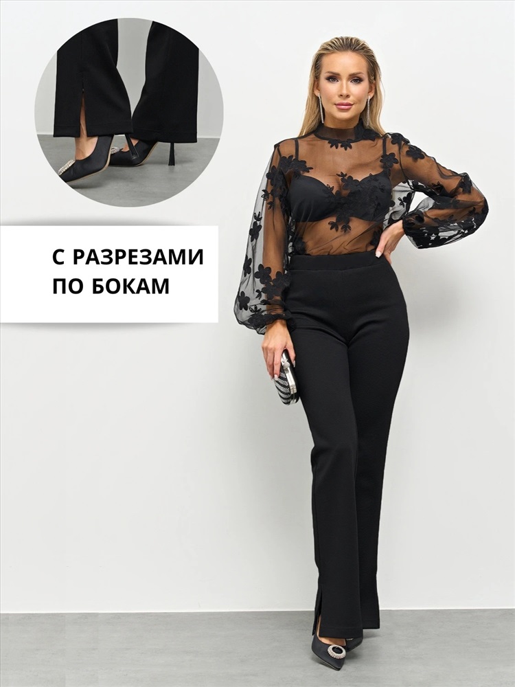 Изделие с притачным поясом на резинке. В боковых швах - высокий разрез. Комментарии к товару
