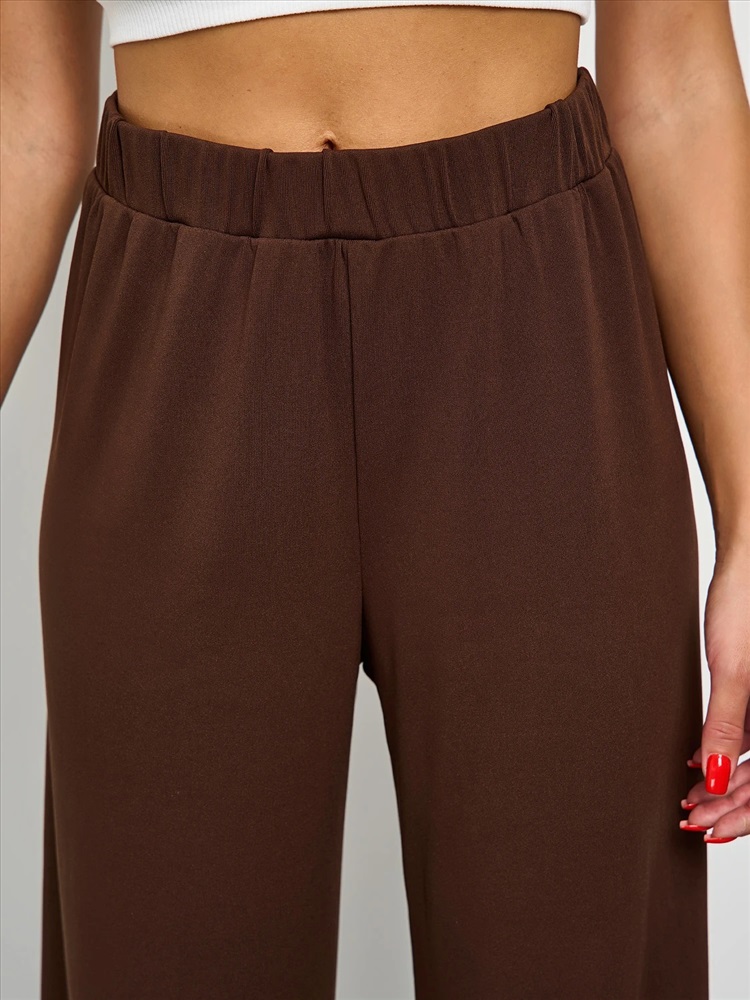 Широкие брюки трендового коричневого цвета из трикотажа.