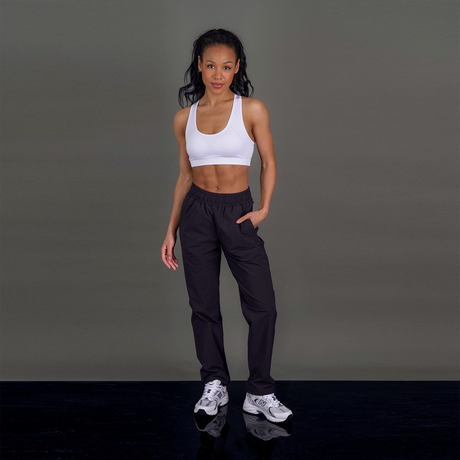 Женские брюки прямого кроя, притачной пояс и функциональные карманы на молнии.Материал: