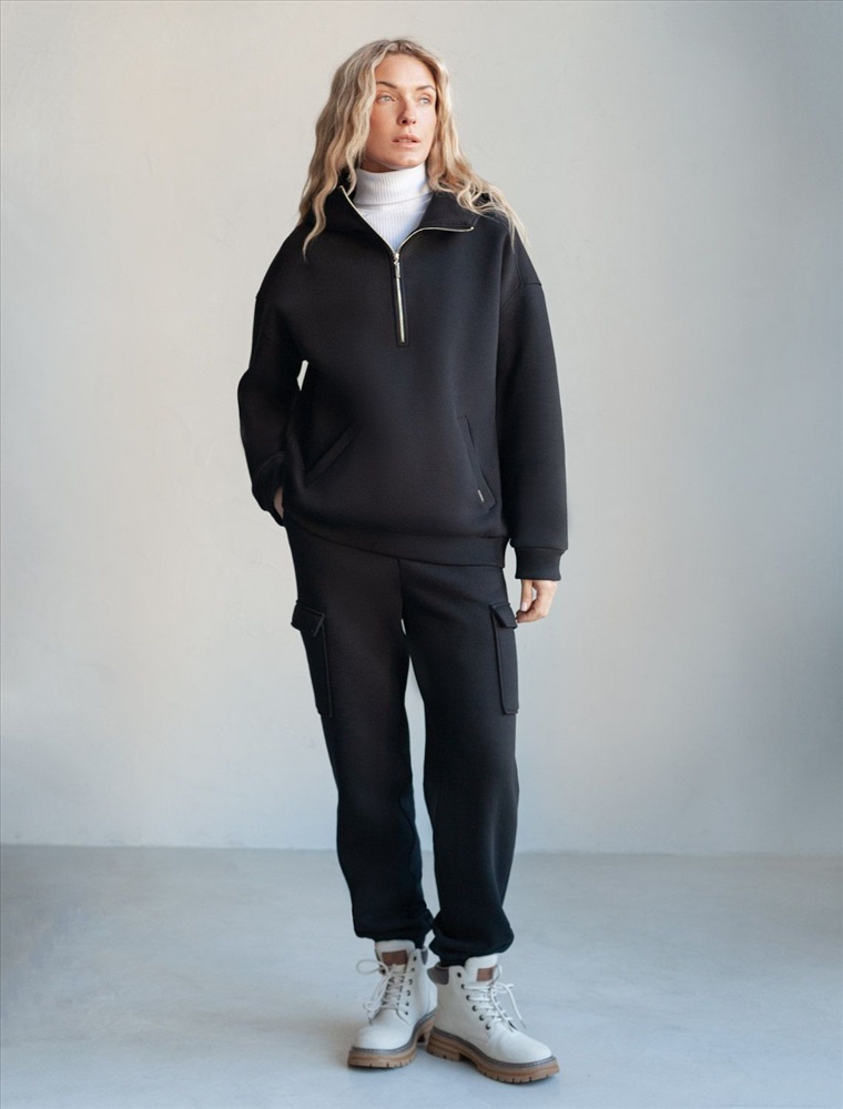 Размер товара на первом фото: 42 Практичные и комфортные свободные джоггеры черного цвета отлично подойдут для активного отдыха и повседневных прогулок. Теплые джоггеры выполнены из футера трехнитки с мягким начесом, обеспечивающего тепло и уют в прохладную погоду. Эластичная резинка на поясе гарантирует удобную посадку и свободу движений, а зауженные штанины создают современный стильный силуэт. Подойдут женщинам на любую фигуру, на объемные и женственные формы или на худеньких девушек, а так же на высокий или низкий рост, благодаря универсальной длине. Натуральный материал отличается высокой износостойкостью, поэтому штаны сохранят презентабельный вид даже после долгого периода активной носки. Эти функциональные брюки незаменимы для путешествий и спортивных занятий на улице. По бокам расположены большие карго карманы с клапаном, которые позволяют удобно хранить мелкие вещи под рукой. Спортивный стиль сочетается с элементами милитари, что делает трендовые брюки актуальными для современных тенденций. Универсальные джоггеры станут надежным выбором для тех, кто ценит практичность и комфорт в одежде на каждый день. Они идеально подходят для активного образа жизни, сочетая в себе стильные детали и комфорт.