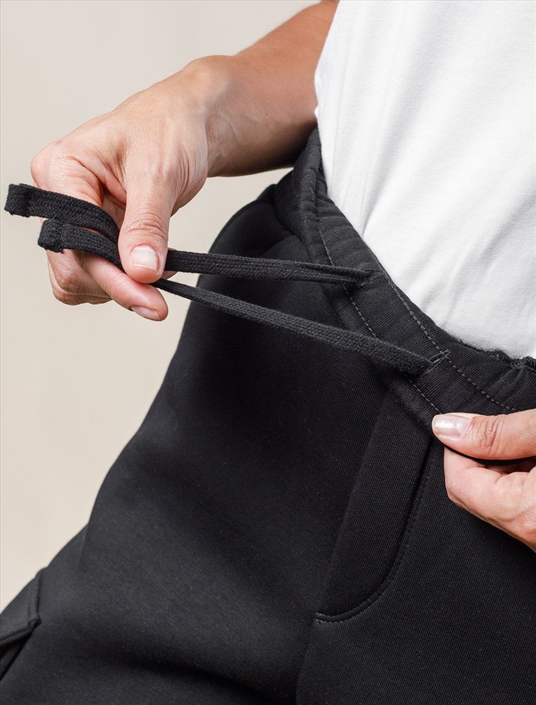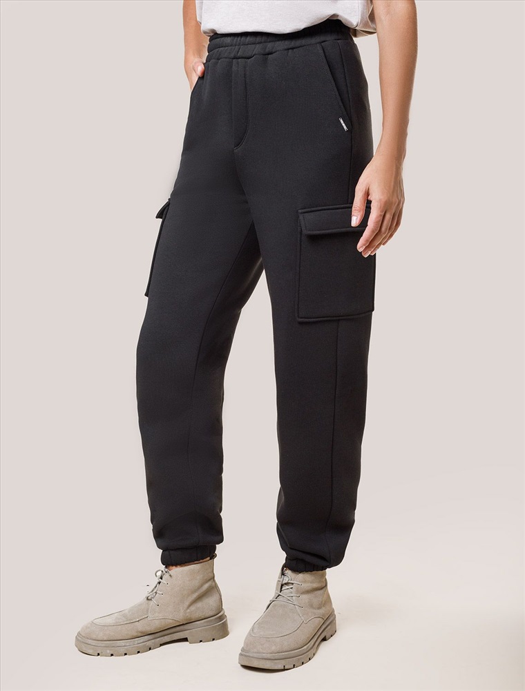 Брюки джоггеры с накладными карманами из футера трехнитки с начесом
