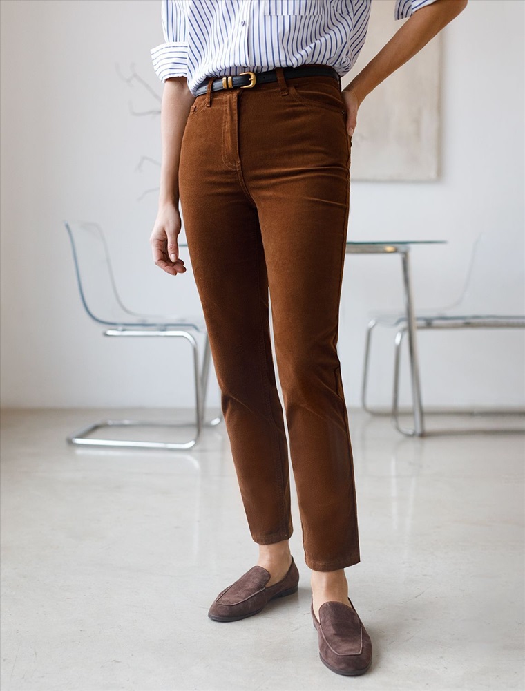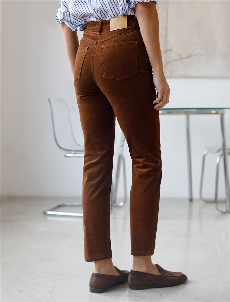 Размер товара на первом фото: 42 Вельветовые брюки женские зауженные в фасоне мом слим станут идеальным дополнением к теплому образу осенью и зимой. Они выполнены из мягкой хлопковой эластичной ткани, которая обеспечивает комфорт и защищает от холода. Модель с высокой посадкой отлично сидит на фигуре, представлен широкий размерный ряд. Также брюки подойдут невысоким девушкам и женщинам. Брюки скроют недостатки фигуры, вытягивают силуэт и удлиняют ноги, благодаря завышенной талии. Пять карманов, как у джинс, добавляют функциональности, а высококачественная фурнитура гарантирует надёжность. Актуальная однотонная расцветка позволит легко комбинировать штаны с другими вещами из гардероба. Брюки джинсы хорошо комбинируется с вязаным трикотажем, блузками и денимом. Как альтернатива классическим брюкам, в нестрогий офисный дресс-код.