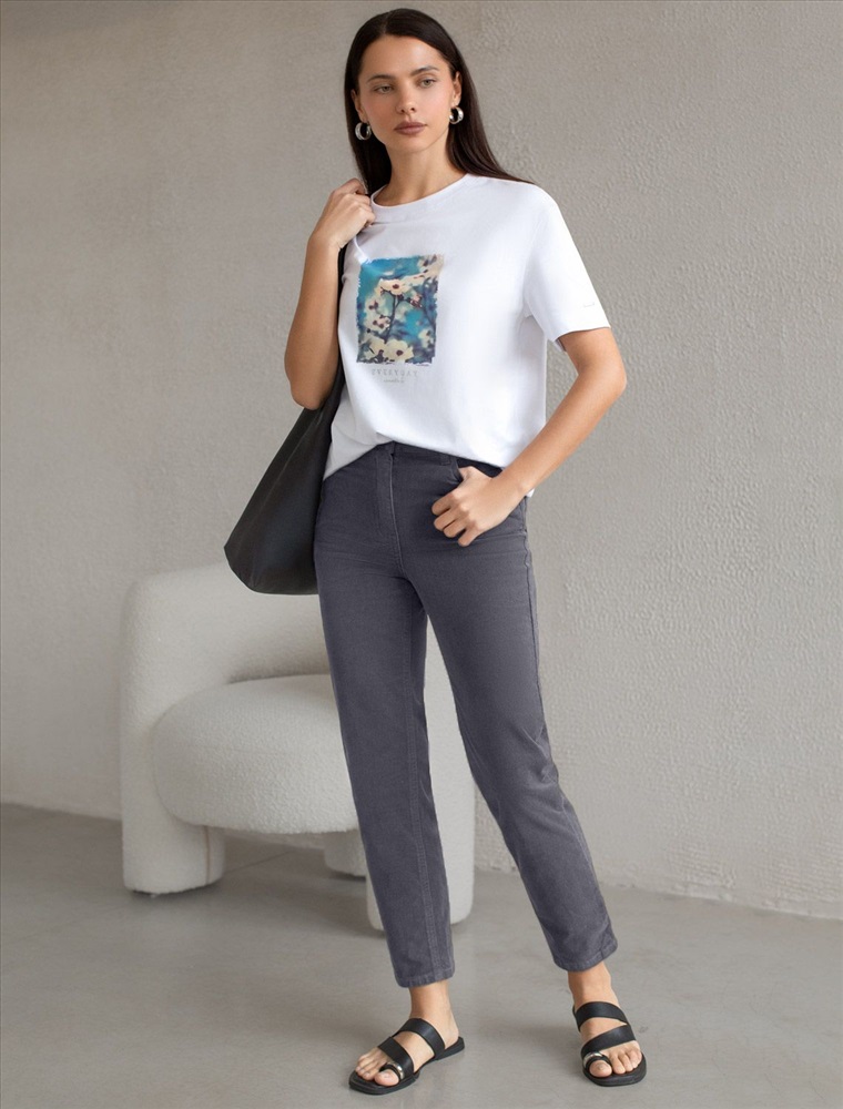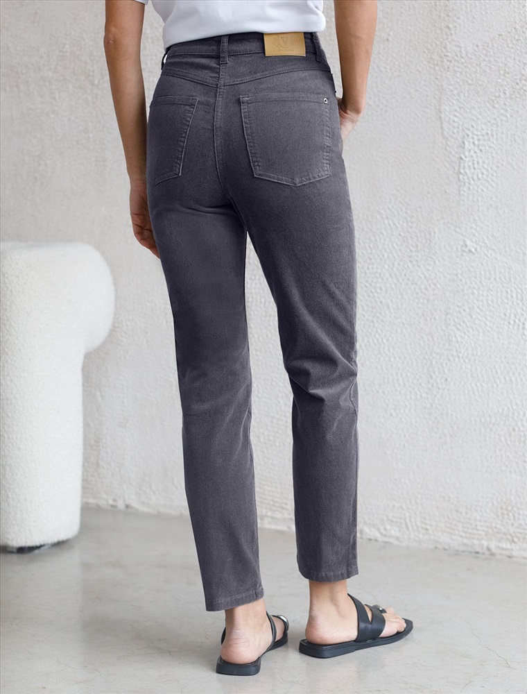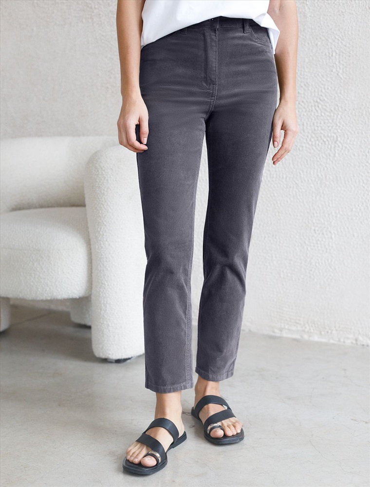 Размер товара на первом фото: 42 Вельветовые брюки женские зауженные в фасоне мом слим станут идеальным дополнением к теплому образу осенью и зимой. Они выполнены из мягкой хлопковой эластичной ткани, которая обеспечивает комфорт и защищает от холода. Модель с высокой посадкой отлично сидит на фигуре, представлен широкий размерный ряд. Также брюки подойдут невысоким девушкам и женщинам. Брюки скроют недостатки фигуры, вытягивают силуэт и удлиняют ноги, благодаря завышенной талии. Пять карманов, как у джинс, добавляют функциональности, а высококачественная фурнитура гарантирует надёжность. Актуальная однотонная расцветка позволит легко комбинировать штаны с другими вещами из гардероба. Брюки джинсы хорошо комбинируется с вязаным трикотажем, блузками и денимом. Как альтернатива классическим брюкам, в нестрогий офисный дресс-код.
