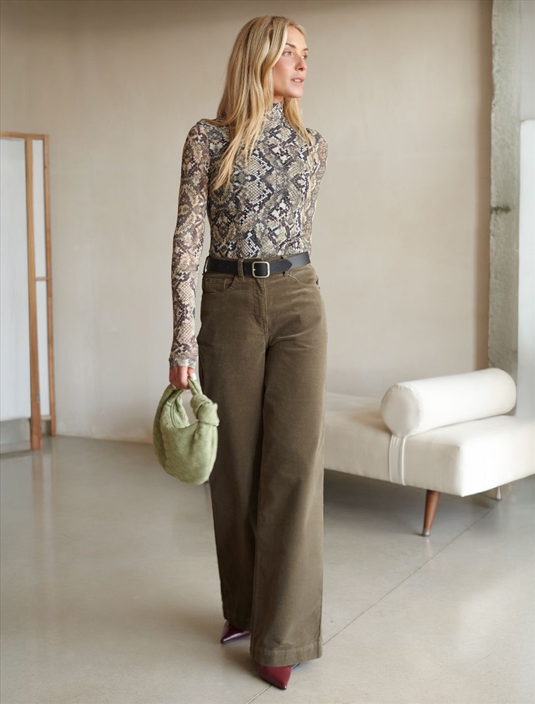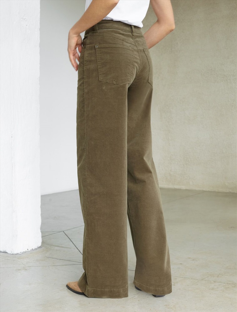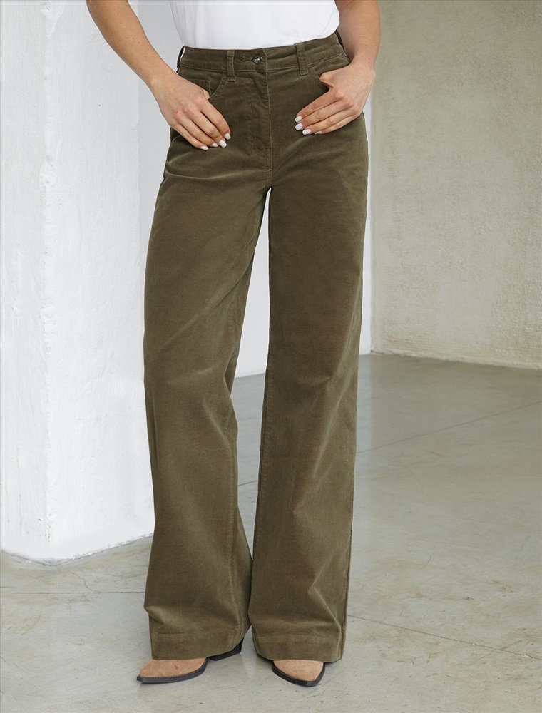 Размер товара на первом фото: 42 Брюки свободного кроя «трубы» выполнены из мягкого хлопкового микро-вельвета с добавлением эластана. Изделие комфортно садится по фигуре и не сковывает движения. Модель с пятью карманами, как у джинсов дополнена высококачественной фурнитурой с фирменным логотипом бренда. Идеально впишутся в повседневный образ, со свитером крупной вязки, курткой-косухой, ботинками на грубой подошве, челси и казаками.