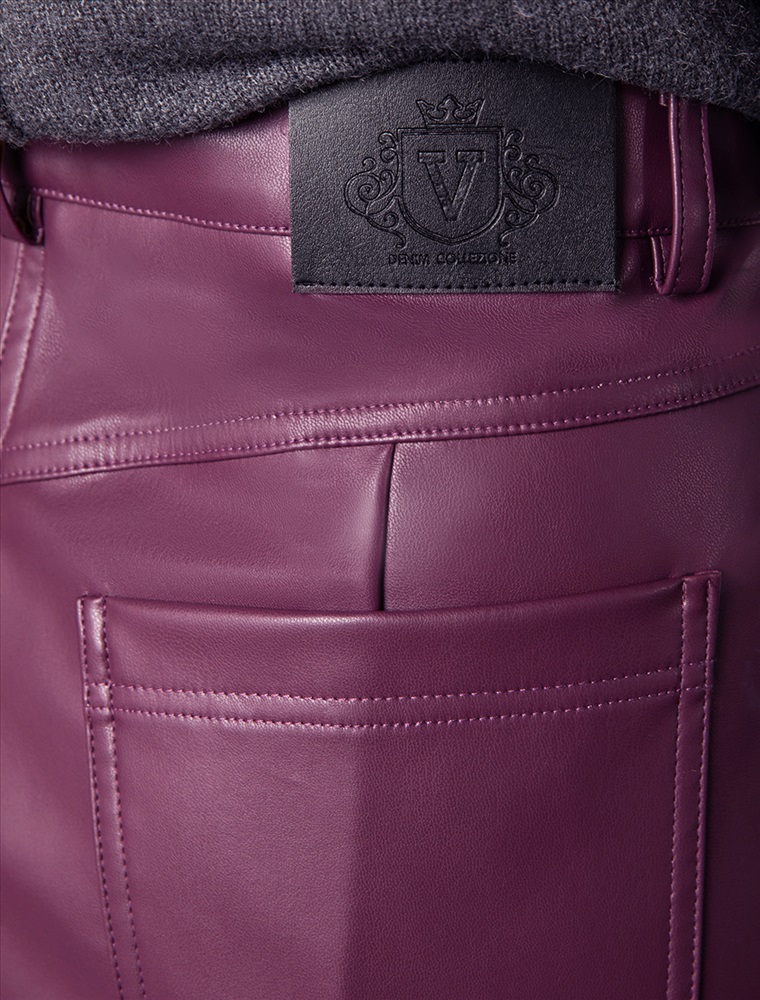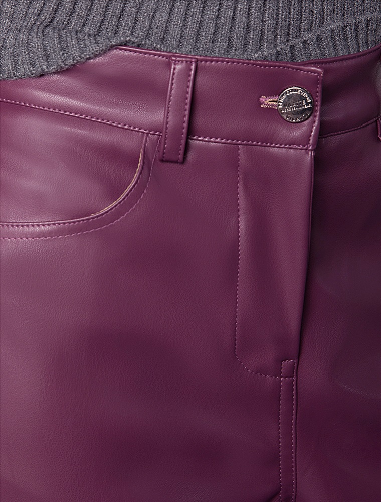 Прямые брюки с поясом со шлевками для ремня выполнили из формоустойчивой эко-кожи. Этот эластичный материал не уступает в прочности натуральной коже и легко тянется, не мешая движениям. Бархатистая внутренняя сторона брюк очень приятна к телу, держит тепло и создана для ощущения полного комфорта. Настоящий маст-хэв в прохладное время года, ведь таким брюкам не страшна любая погода. Модель легко сочетается с любым верхом и обувью.