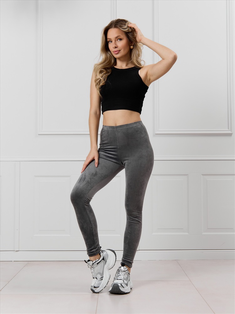 Леггинсы молодежные из трикотажного гладкокрашенного полотна «велюр-стрейч» длинные, облегающие фигуру, с эластичной тесьмой по талии.