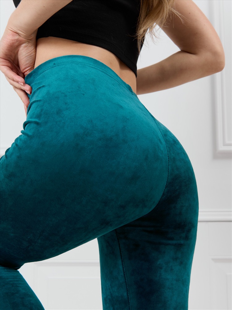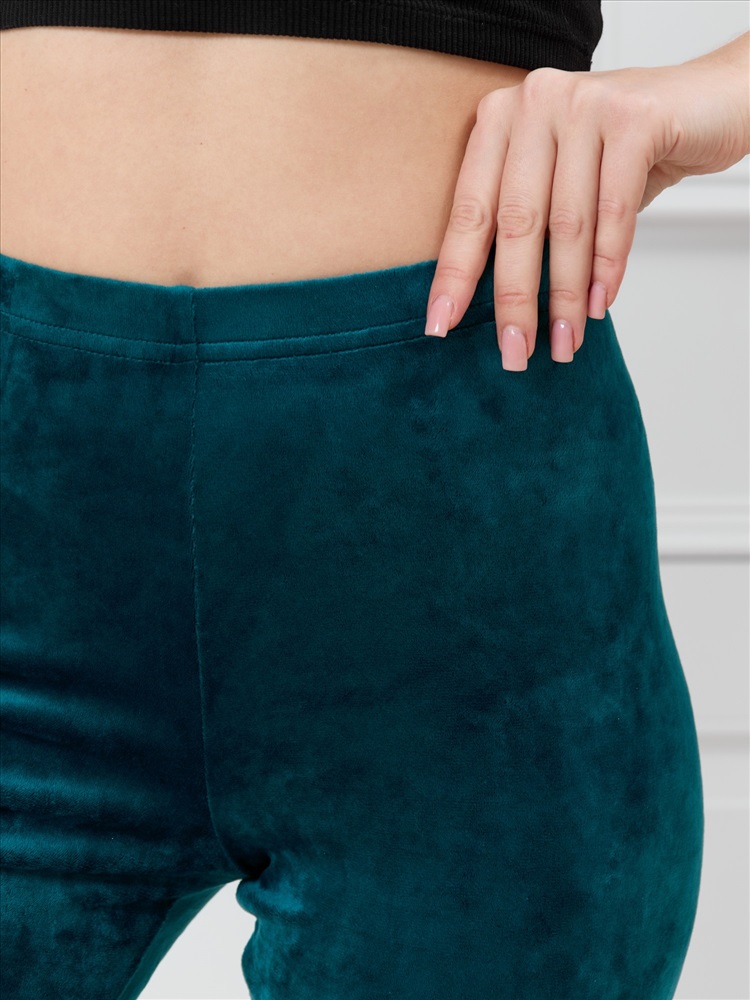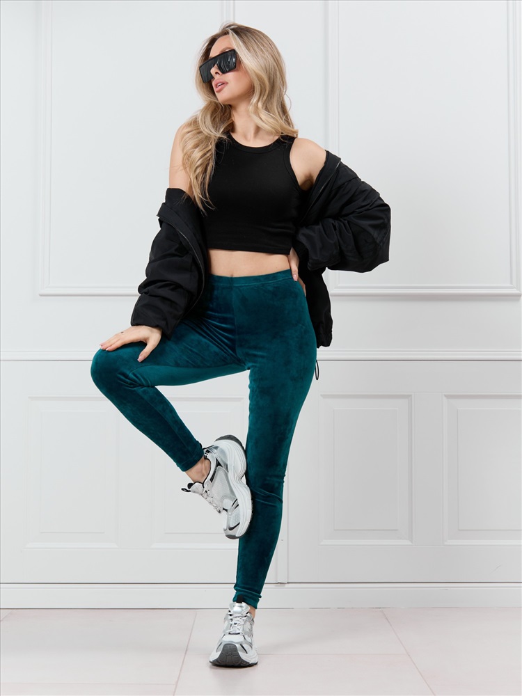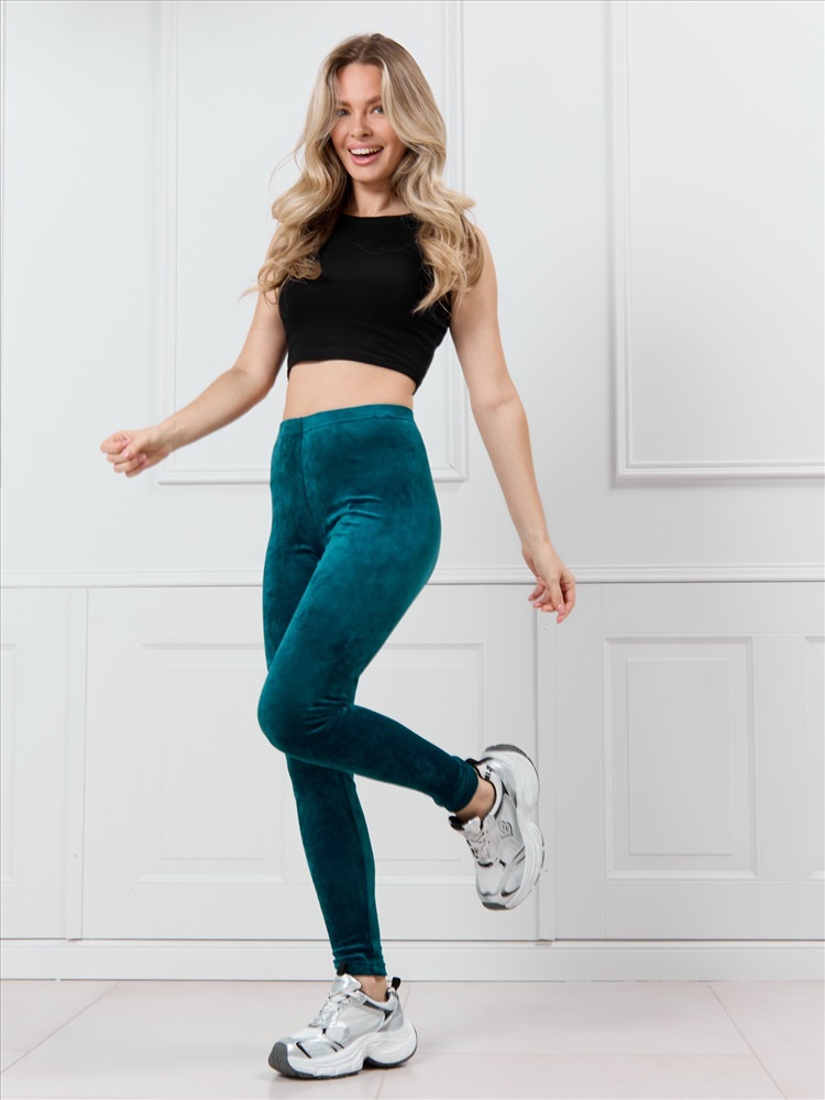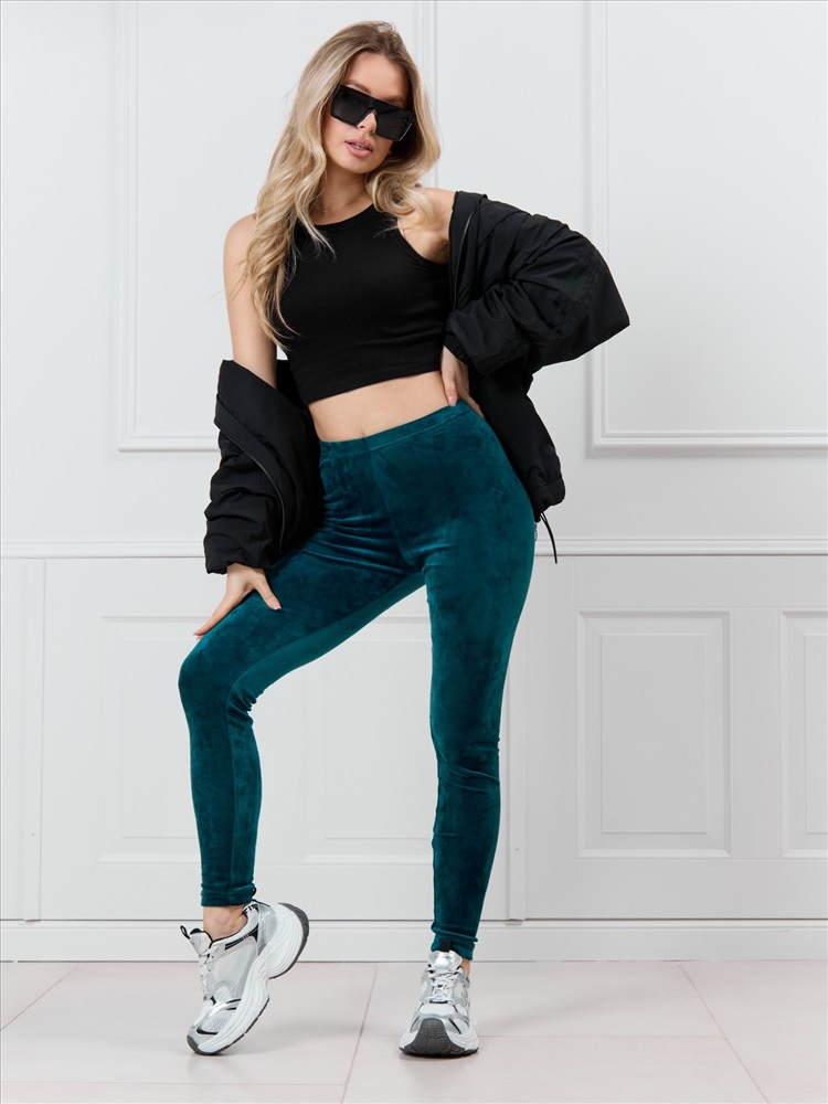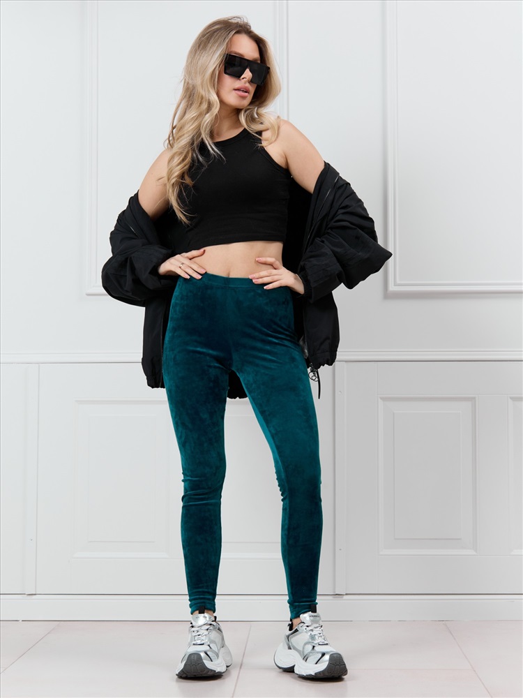 Леггинсы молодежные из трикотажного гладкокрашенного полотна «велюр-стрейч» длинные, облегающие фигуру, с эластичной тесьмой по талии.