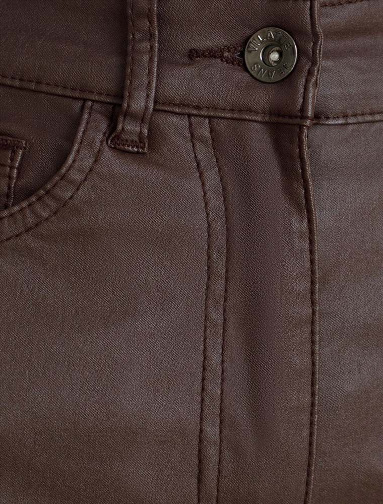 Брюки mom fit из эластичного хлопка с покрытием под кожу