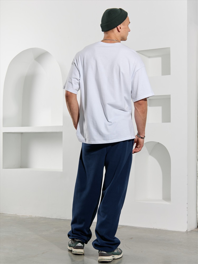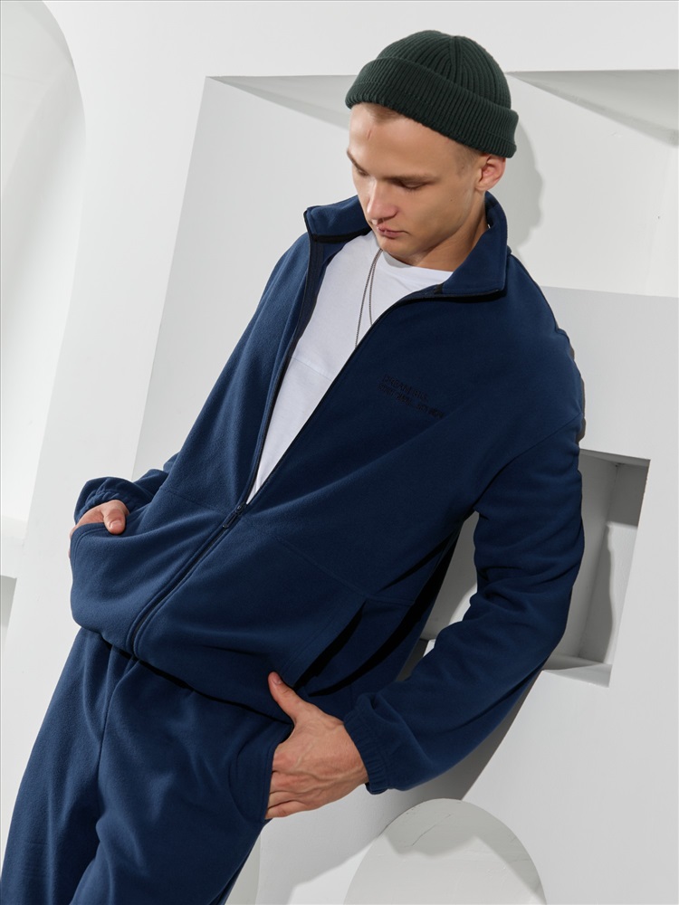 Брюки мужские из флиса, свободного покроя, на притачном поясе с эластичной тесьмой внутри, с карманами в боковых швах. С изнаночной стороны пояса вставлен шнурок для регулирования степени прилегания изделия по талии. Нижние срезы брюк обработаны подгибкой с эластичной тесьмой.