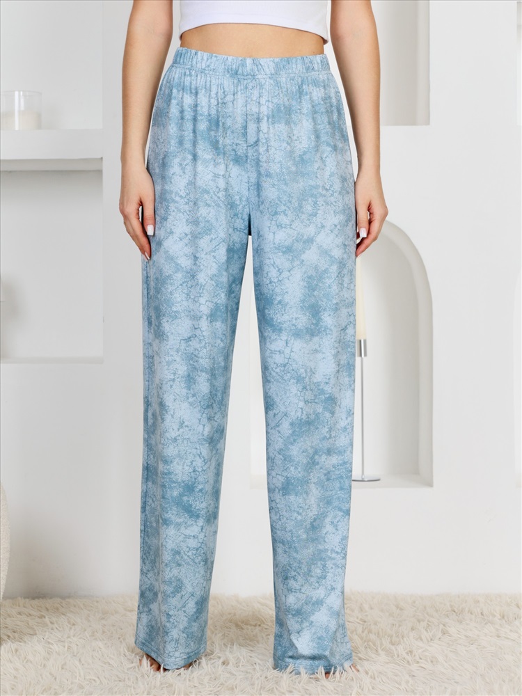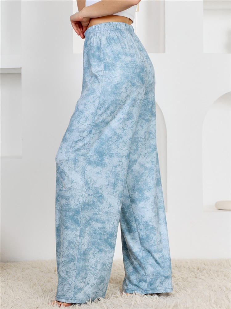 Брюки молодежные из трикотажного полотна «египетский хлопок» с набивным рисунком «варенка», свободные, с эластичной тесьмой по талии.