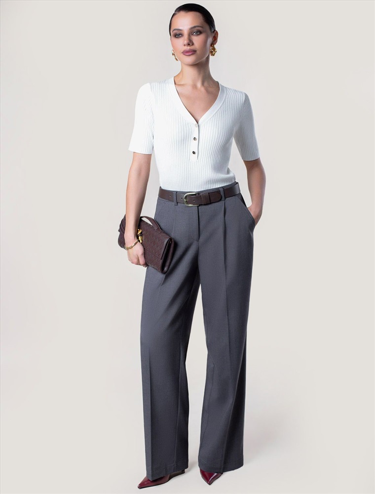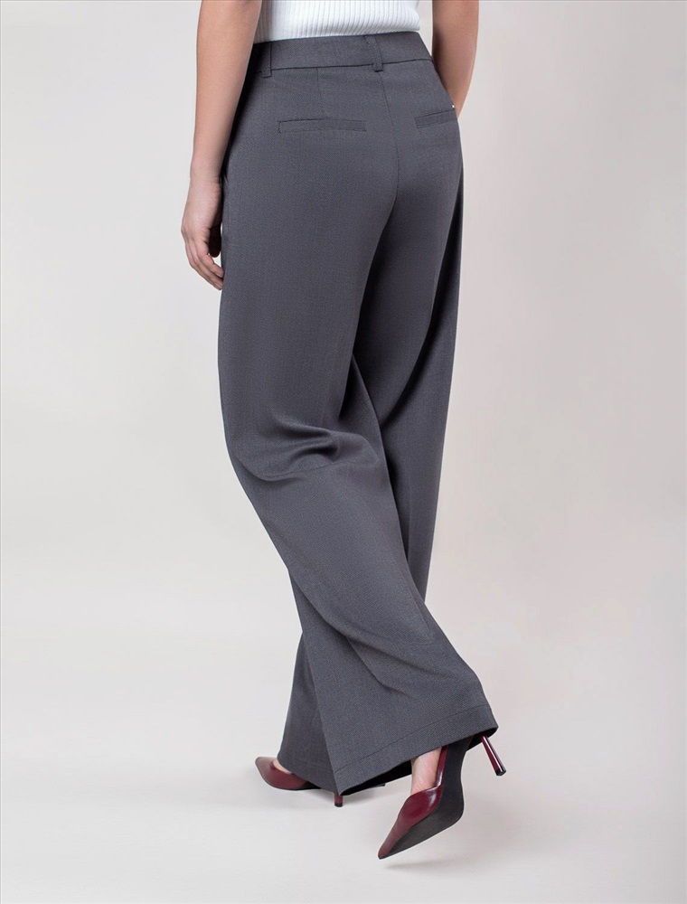 Брюки-палаццо выполнены из эластичной поливискозы. Легкая и струящаяся ткань идеально подойдет для повседневных образов. Модель с высокой посадкой визуально стройнит и вытягивает силуэт, удлиняет ноги. По верхнему краю спереди классически заложены складки, что придает свободы и простора в районе бедер. Свободный силуэт подходит для любой фигуры.