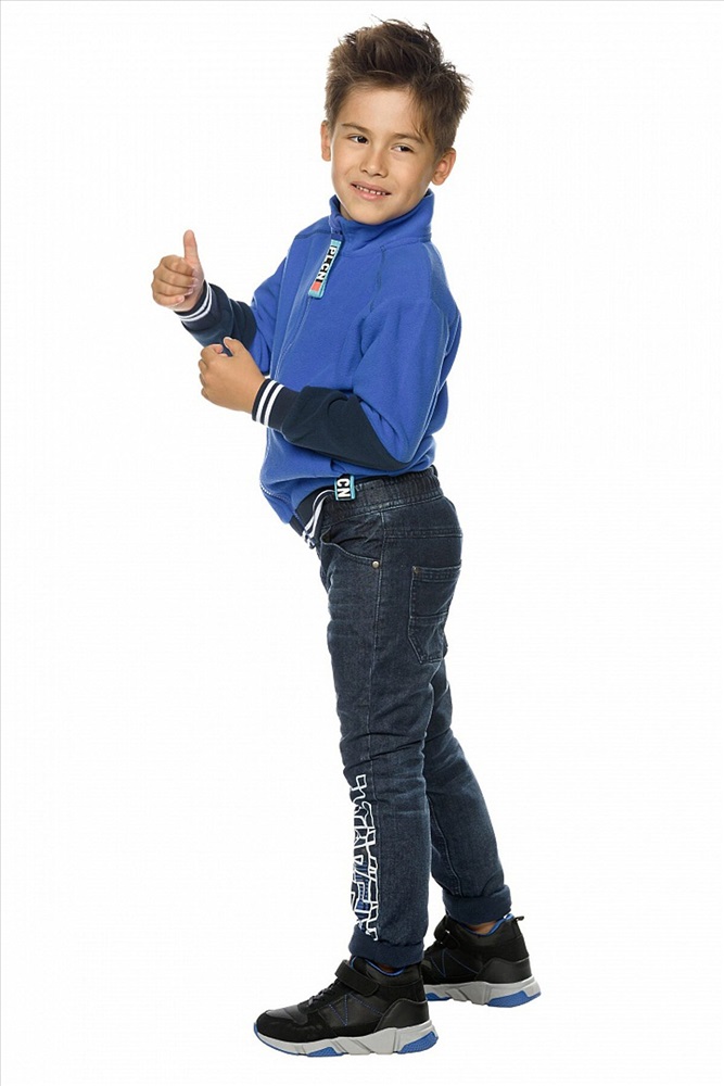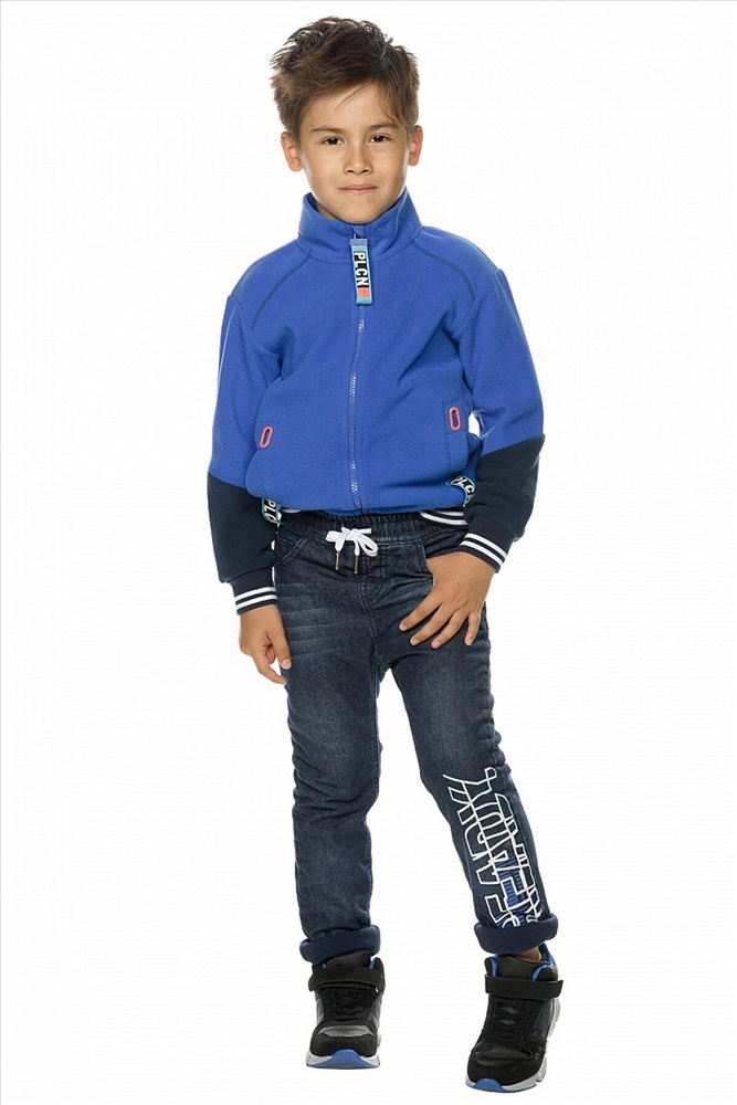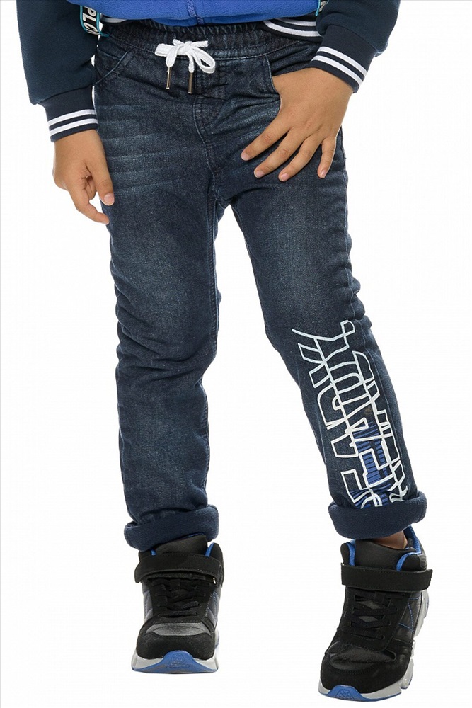 Джинсы для мальчиков на флисе умеренного объёма, слегка зауженные к низу, локальный принт с надписью Готов, пояс с регулировкой объема на широкой внутренней резинке, металлическая фурнитура. Состав: 75%хлопок 25%полиэстер, подклад: 100%полиэстер"