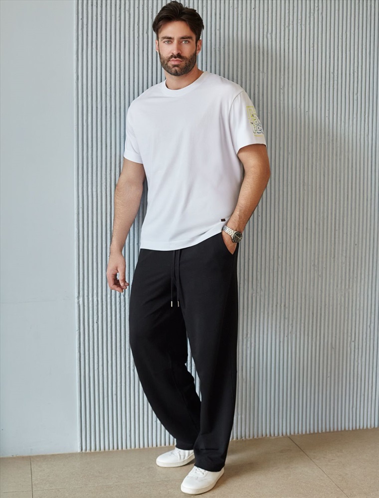 Плотность: 240 Г/м2 Размер товара на первом фото: 42 Свободные брюки черного цвета с эластичным поясом на резинке и шнуром с металлическим наконечником изготовлены из премиального футера двухнитки. Натуральная ткань, в составе которой хлопок и эластан, отличается дышащими свойствами и мягкостью на ощупь, обеспечивает комфорт и удобство в повседневной носке. Трикотажные брюки сохраняют свой первоначальный вид после многочисленных стирок, что делает их практичными для активного использования. Повседневные брюки дополнены карманами по бокам и одим задним карманом на молнии, что позволяет удобно хранить необходимые мелочи. Внизу расположены затяжки на стопорах, тем самым можно регулировать посадку под индивидуальные предпочтения каждого мужчины. Свободные штаны подходят для любого роста и размеров, включая большие, отлично сидят благодаря продуманному крою и функциональным деталям. Они универсальны — легко вписываются как в домашний гардероб, так и в уличный стиль, такой выбор станет отличным решением для парней, ценящих комфорт и стиль в повседневных вещах. Сочетайте их комплектом с футболками и свитшотами. Комментарии к товару