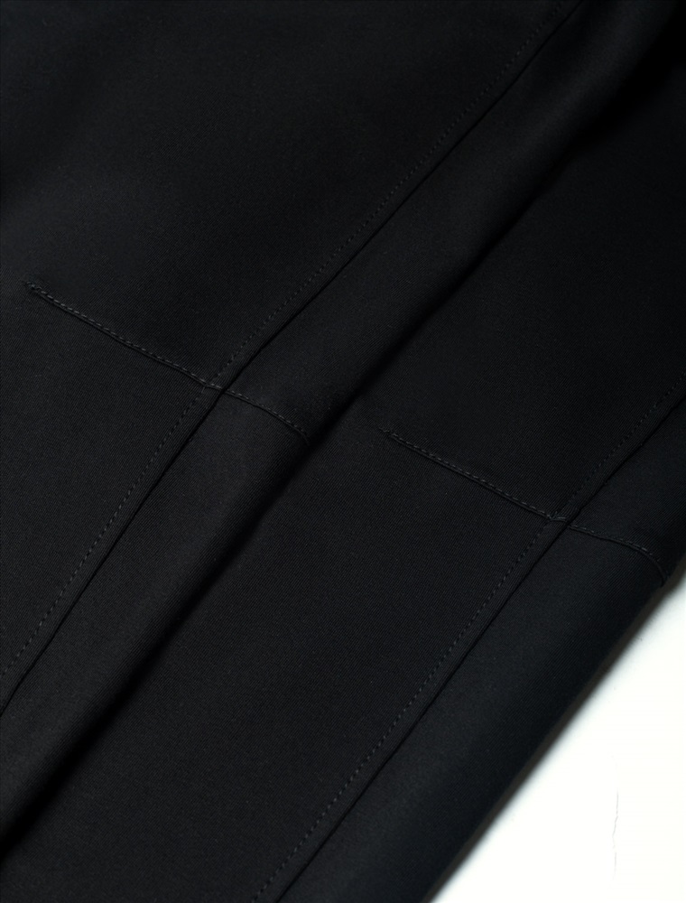 Свободные брюки черного цвета с эластичным поясом на резинке и шнуром с металлическим наконечником изготовлены из премиального футера двухнитки. Натуральная ткань, в составе которой хлопок и эластан, отличается дышащими свойствами и мягкостью на ощупь, обеспечивает комфорт и удобство в повседневной носке. Трикотажные брюки сохраняют свой первоначальный вид после многочисленных стирок, что делает их практичными для активного использования. Повседневные брюки дополнены карманами по бокам и одим задним карманом на молнии, что позволяет удобно хранить необходимые мелочи. Внизу расположены затяжки на стопорах, тем самым можно регулировать посадку под индивидуальные предпочтения каждого мужчины.