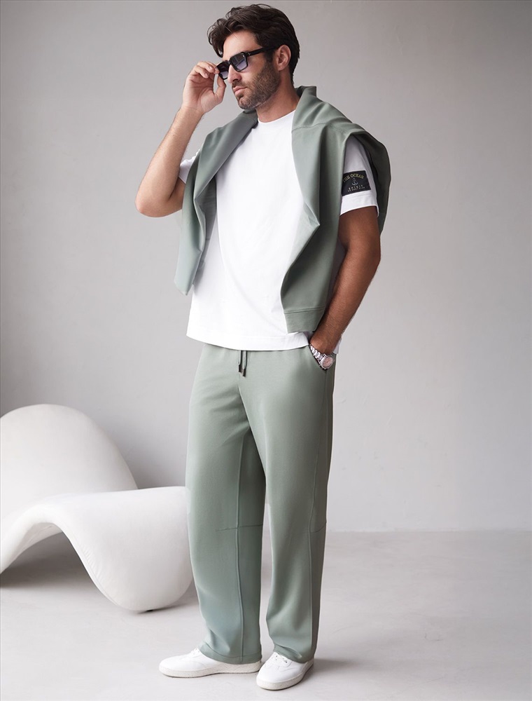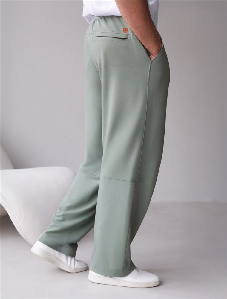 Плотность: 240 Г/м2 Размер товара на первом фото: 42 Свободные брюки светло-оливкого цвета с эластичным поясом на резинке и шнуром с металлическим наконечником изготовлены из премиального футера двухнитки. Натуральная ткань, в составе которой хлопок и эластан, отличается дышащими свойствами и мягкостью на ощупь, обеспечивает комфорт и удобство в повседневной носке. Трикотажные брюки сохраняют свой первоначальный вид после многочисленных стирок, что делает их практичными для активного использования. Повседневные брюки дополнены карманами по бокам и одим задним карманом на молнии, что позволяет удобно хранить необходимые мелочи. Внизу расположены затяжки на стопорах, тем самым можно регулировать посадку под индивидуальные предпочтения каждого мужчины. Свободные штаны подходят для любого роста и размеров, включая большие, отлично сидят благодаря продуманному крою и функциональным деталям. Они универсальны — легко вписываются как в домашний гардероб, так и в уличный стиль, такой выбор станет отличным решением для парней, ценящих комфорт и стиль в повседневных вещах. Сочетайте их комплектом с футболками и свитшотами. Комментарии к товару