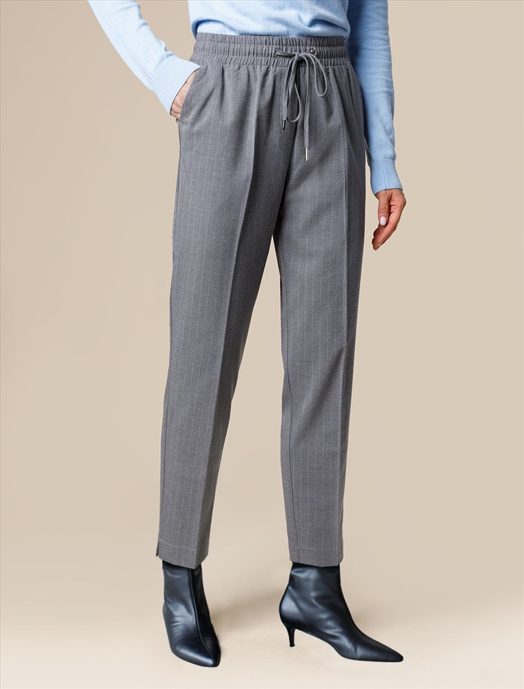 Брюки выполнены из премиальной поливискозы. Модель дополнена поясом на резинке с регулируемым шнурком. Изделие хорошо подойдет как для строгого делового образа с блузкой и жакетом, так и для более расслабленного с футболкой и водолазкой. Эластичный материал изделия поддерживает оптимальный микроклимат, формоустойчивость и комфорт в течение всего дня.