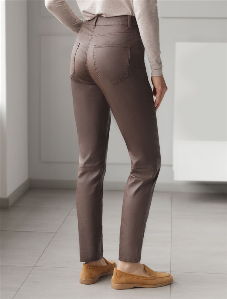 Брюки слим из эластичного хлопка с покрытием под кожу