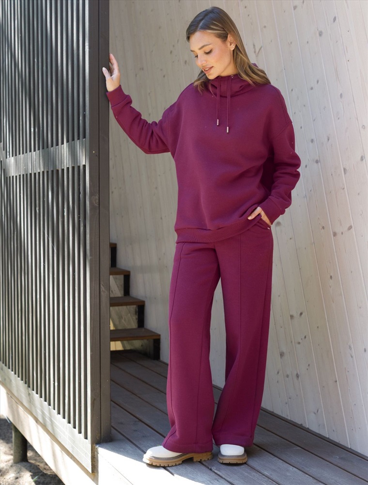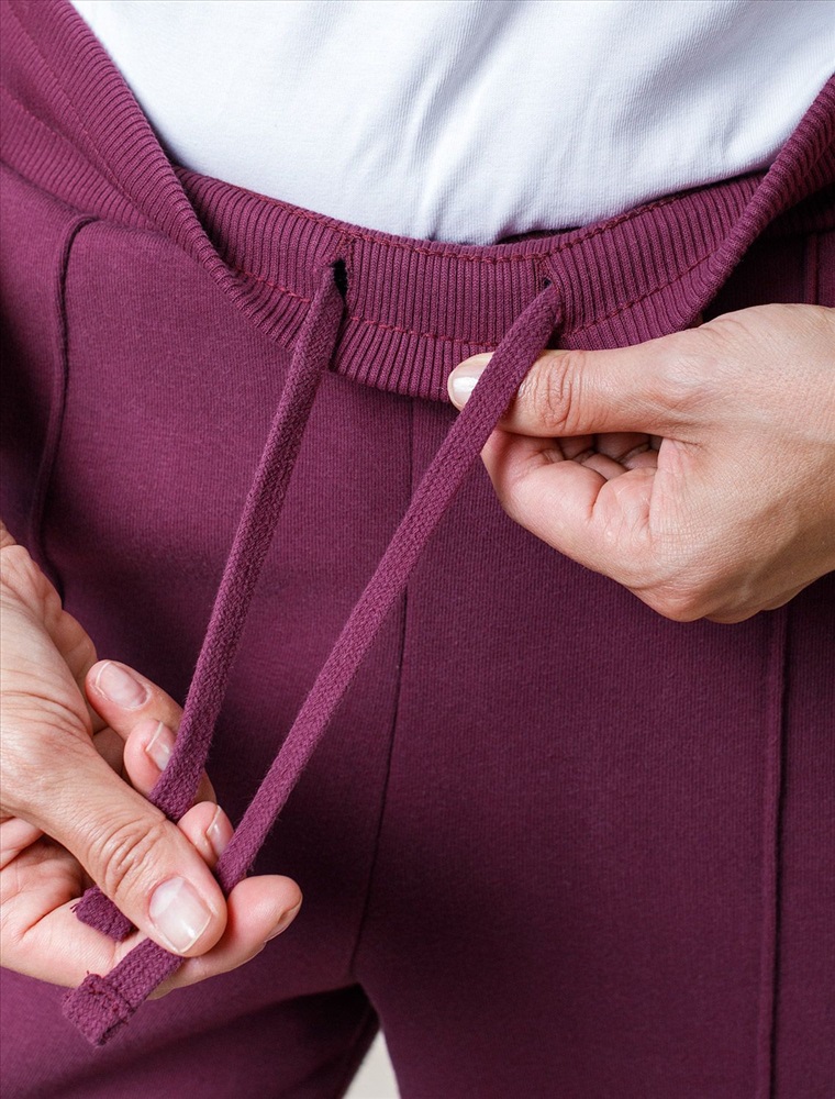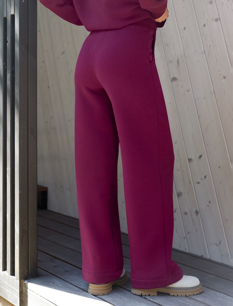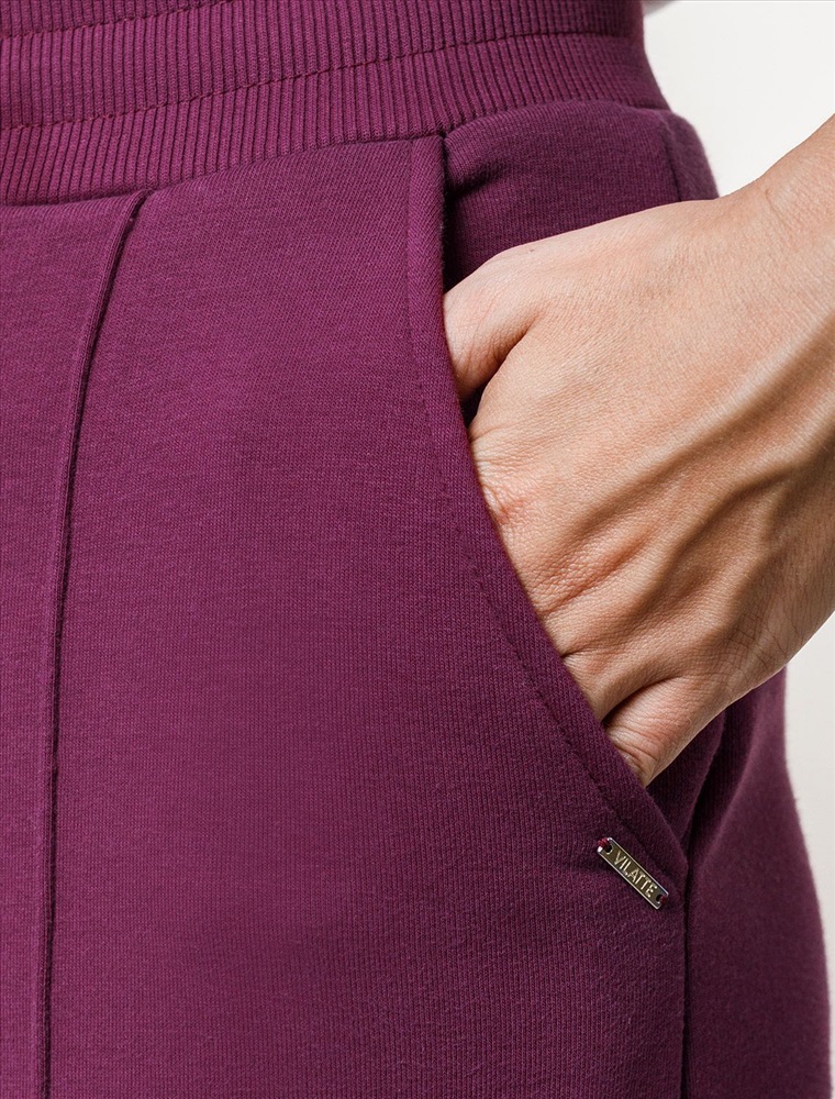 Эти уютные брюки стильного пурпурного цвета созданы для вашего комфорта. Свободный прямой крой обеспечивает свободу движений и максимальное удобство в любых ситуациях, поэтому они подойдут и на большие размеры, а так же на высокий или низкий рост. Фигура подчеркивается, а силуэт визуально вытягивается за счет кроя палаццо и застроченных декоративных стрелок.