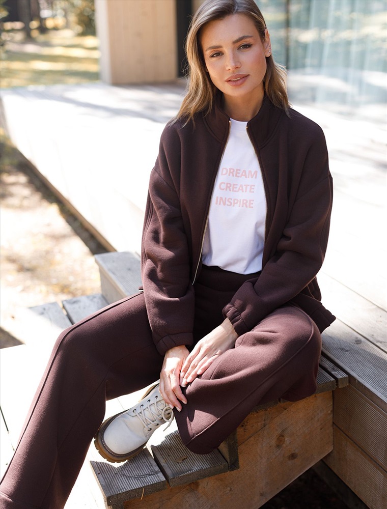 Размер товара на первом фото: 42 Теплые брюки прямого кроя с удобным поясом на резинке и карманами по бокам выполнены из премиального футера-трехнитки. Наличие эластана в составе гарантирует комфорт и долговечность изделия, материал хорошо пропускает воздух, позволяя телу дышать, а мягкий начес обеспечивает дополнительное тепло и комфорт в прохладную погоду. Эти уютные брюки актуального коричневого цвета созданы для вашего комфорта. Свободный прямой крой обеспечивает свободу движений и максимальное удобство в любых ситуациях, поэтому они подойдут и на большие размеры, а так же на высокий или низкий рост. Фигура подчеркивается, а силуэт визуально вытягивается за счет кроя палаццо и застроченных декоративных стрелок. Вы можете создать стильный образ на каждый день в сочетании с любой футболкой нашего бренда, худи D49.102 и бомбером D49.103. В повседневных трикотажных брюках вы будете чувствовать себя комфортно и уверенно, наслаждаясь каждым моментом дня. Комментарии к товару