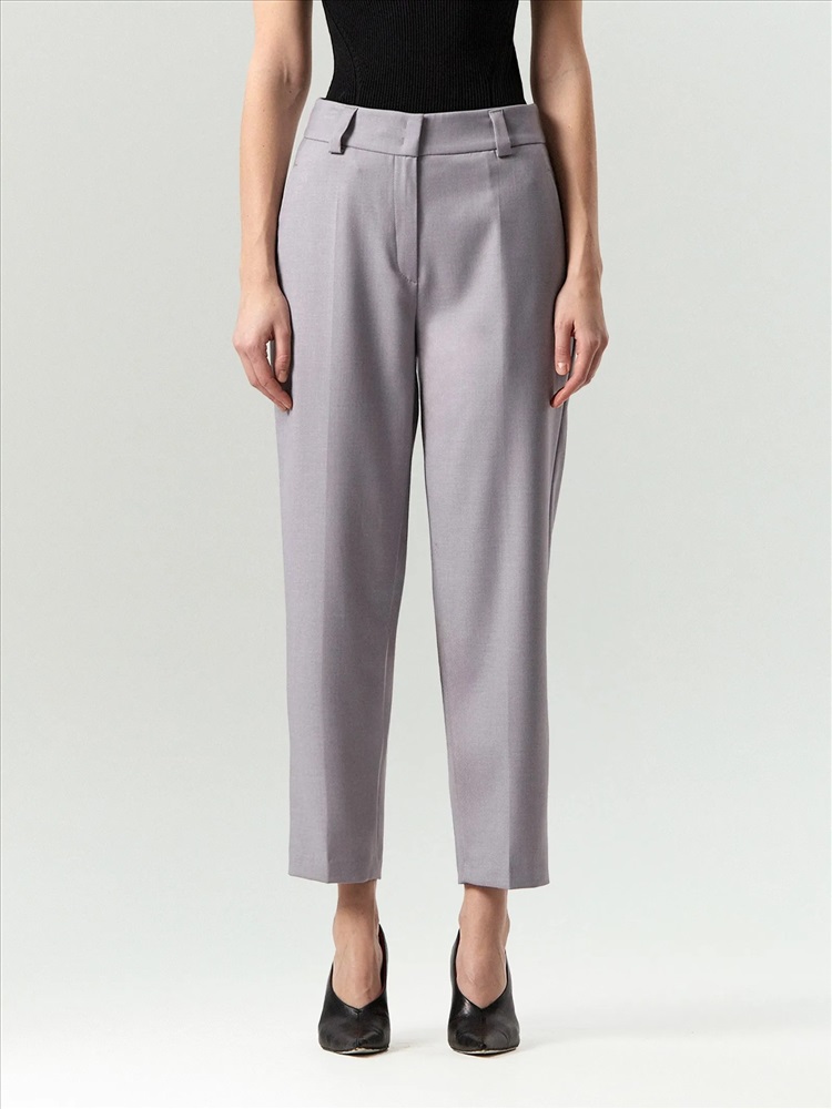 Брюки отличаются изысканным оттенком: серый с лиловым подтоном выглядит необычно. По-весеннему лёгкая костюмная ткань с содержанием вискозы комфортно ощущается на теле. Такая вещь хороша для нарядных, деловых и даже повседневных образов. Элегантная модель с потайной застёжкой имеет высокую посадку и зауженный крой. Дополнить можно жилетом из комплекта. Брюки могут стать частью капсулы с жилетом и юбкой piter.