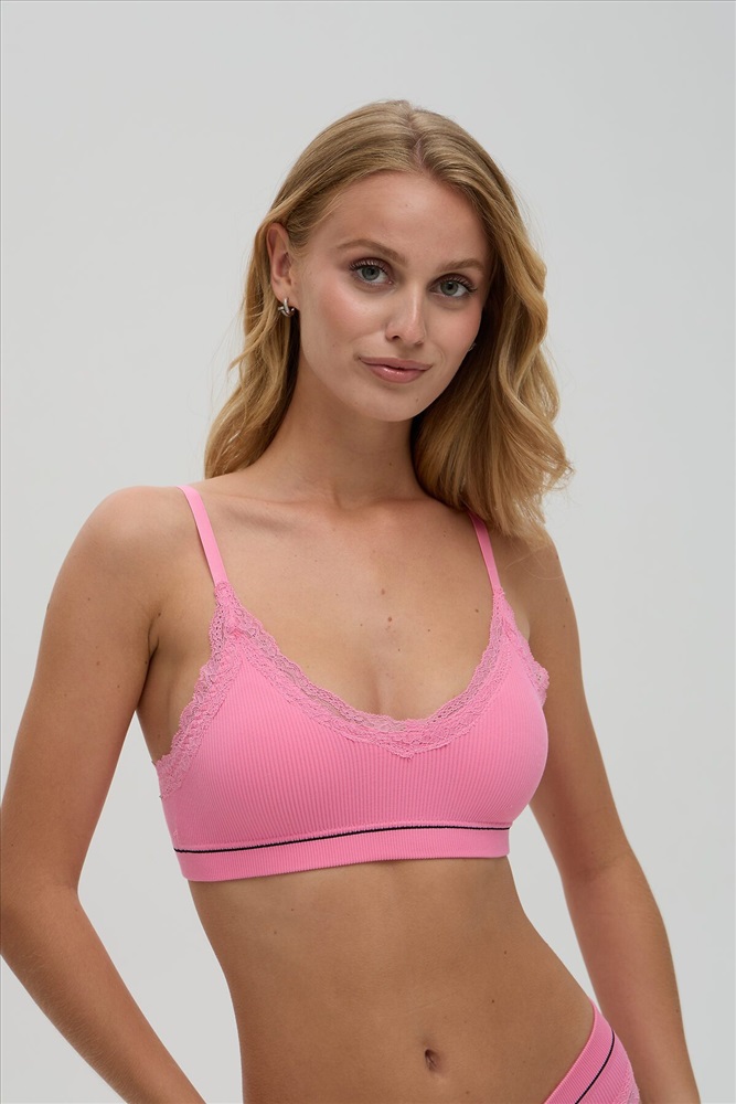 ID товара: 1190789 Состав: 92% Полиамид, 8% Эластан Сезон: Демисезон Основная ткань: Полиамид Модель лифа/бюстгальтера: С мягкой чашкой Страна бренда: Россия Страна производства: Россия Бюстгальтер формы Soft bra с мягкими чашками, без каркасов и боковых корсетных вставок, выполнен из нежного материала в рубчик. Подклад в передней части и съемные формованные чашки. Эластичное кружево по верхнему срезу и резинка, с вывязанной полоской контрастного цвета, украшают изделие. Однотонные регулируемые бретели не отстегиваются. Без застежки. Комментарии к товару