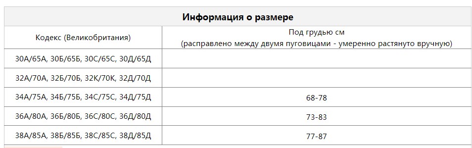Размер: 32Б/70Б, 34С/75С, 36С/80С, 38Б/85Б, 38С/85С