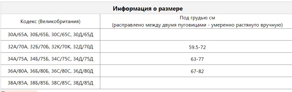 Размер: 32А/70А, 32D/70D, 36С/80С, 36D/80D