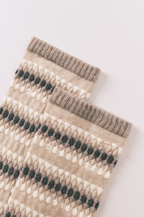 Calcetines largos con estampado de rombos, fabricados en algodón suave y elástico. Diseñado para ofrecer comodidad y estilo durante tus actividades diarias.
