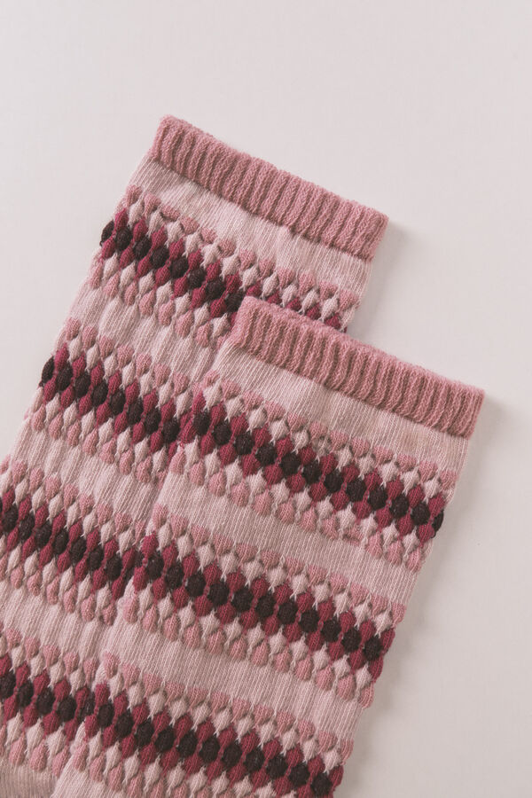Calcetines largos con estampado de rombos, fabricados en algodón suave y elástico. Diseñado para ofrecer comodidad y estilo durante tus actividades diarias.
