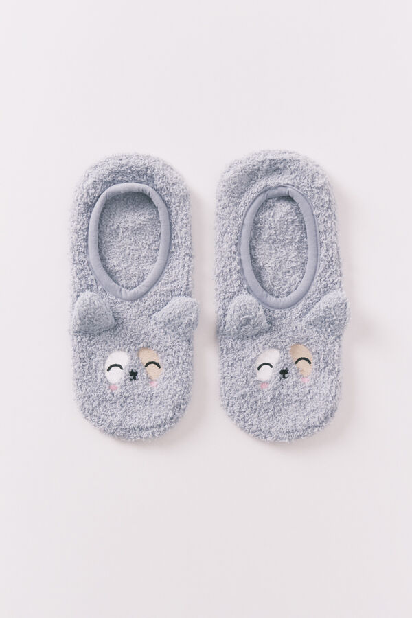 Calcetines slip on, con textura fluffy y diseño de perro en 3D para un toque divertido. Diseñado para ofrecer comodidad y estilo durante tus actividades diarias.