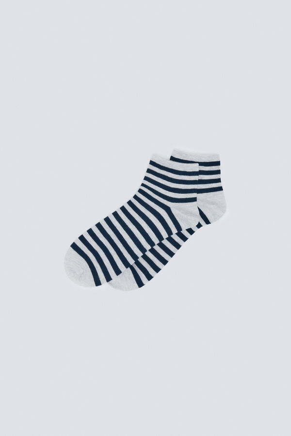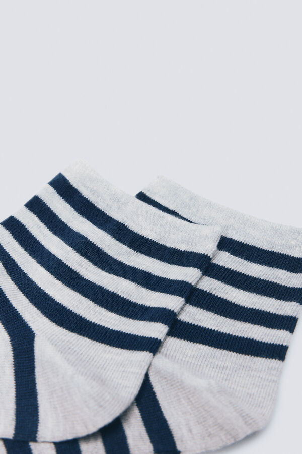 Calcetín corto con rayas negras, con punta, talón y borde superior lisos.