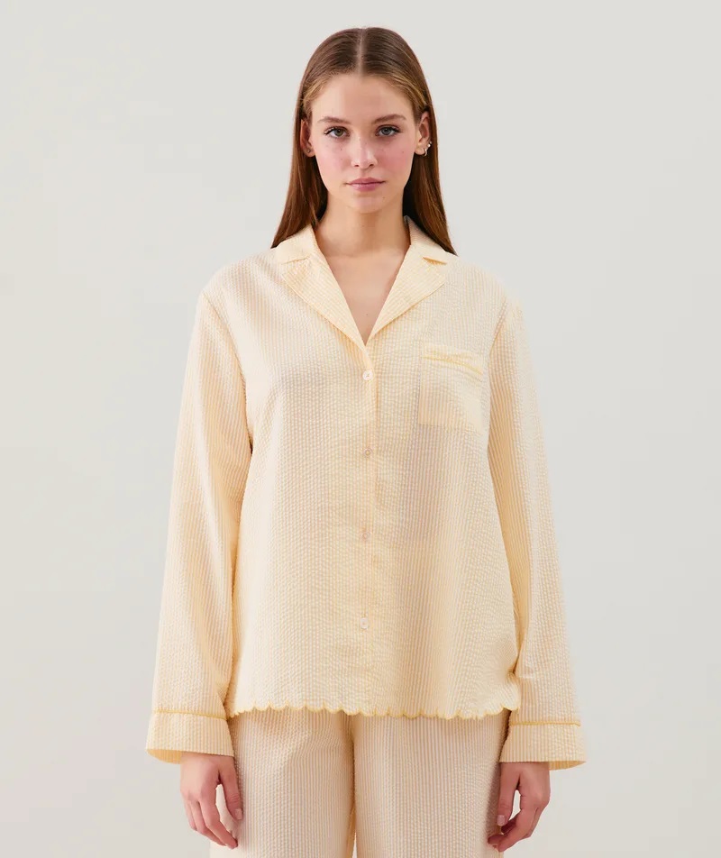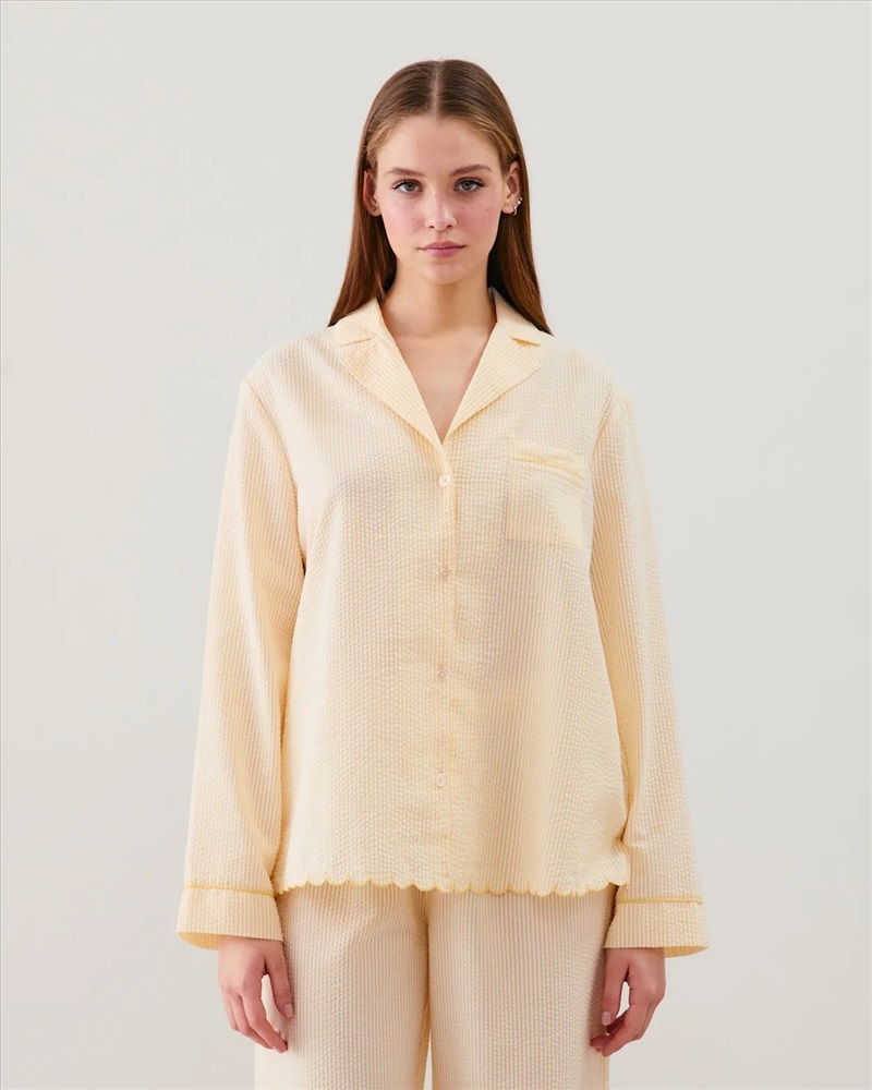\n- Camisa GAELIZ \n- Color: amarillo pastel \n- Seersucker \n- We care