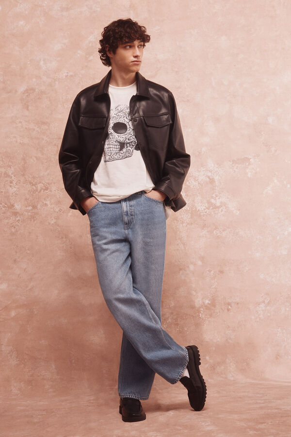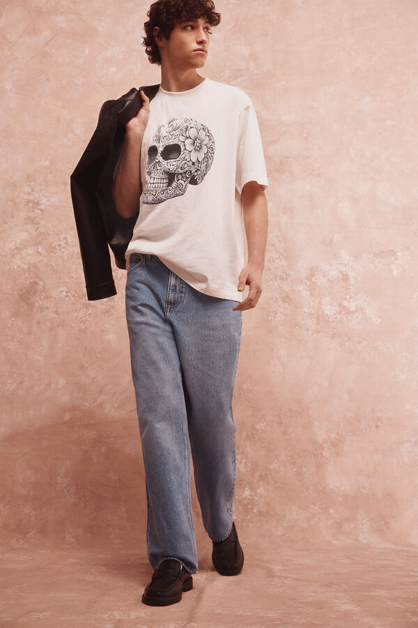 Camiseta manga corta loose fit. Estampado Skull Mex Grey. Hecha en 100% algodón.