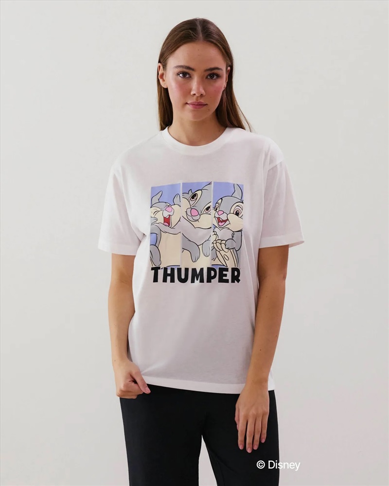 Descubre el top de Tambor de manga corta, en punto y con cuello redondo. Nos encanta el estampado de tu personaje favorito sobre un fondo blanco roto, ¡tan adorable que no te podrás resistir!