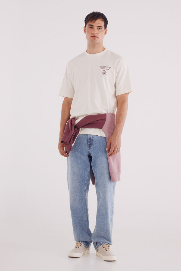 Camiseta manga corta boxy fit en algodón. Cuello redondo de canalé y estampado fotográfico en delantero y espalda.