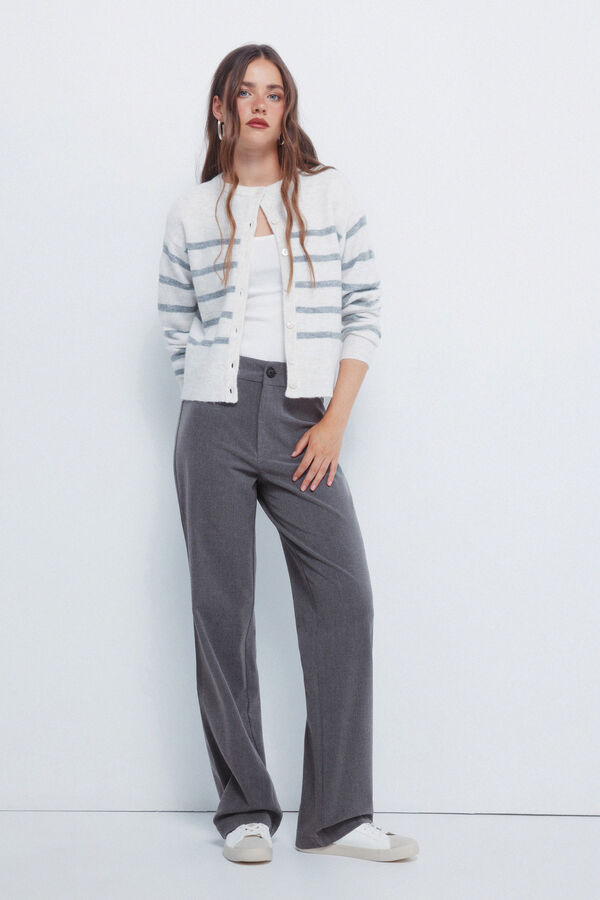 Cardigan corto de manga larga, con cuello redondo, con botones en el delantero, con canalé en los puños y en el bajo