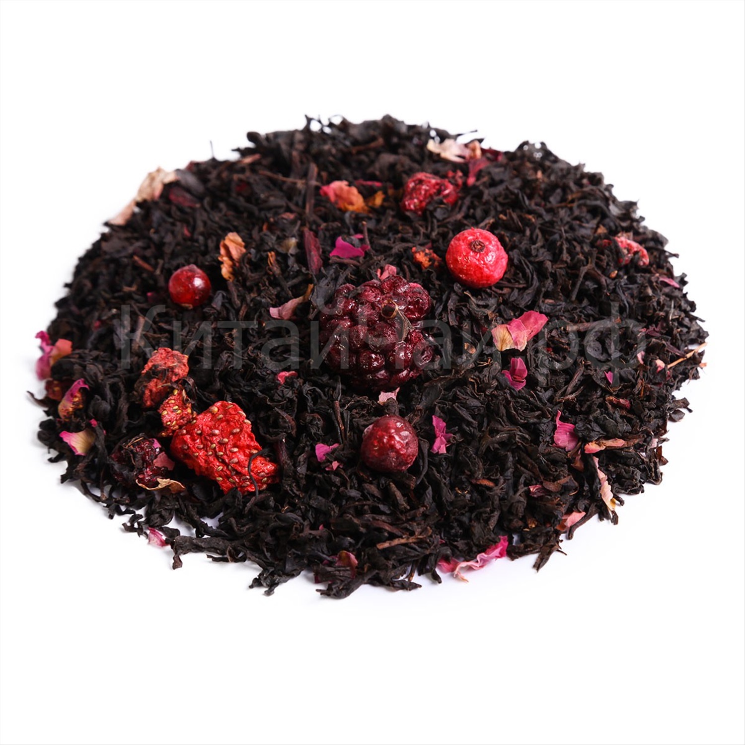 Черный индийский чай Ассам, ягоды ежевики, клубники, малины и красной смородины, лепестки гибискуса и розы, аромат ягодно-шоколадного десерта.
