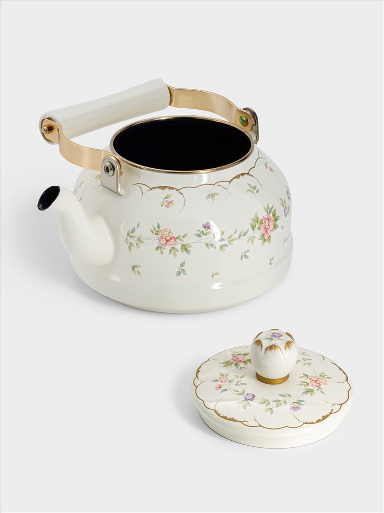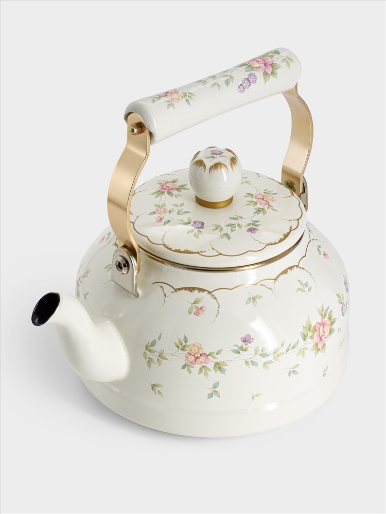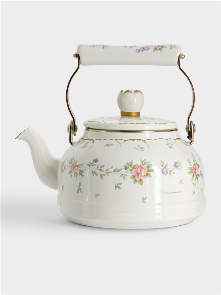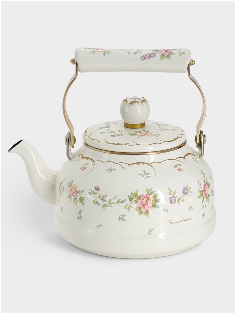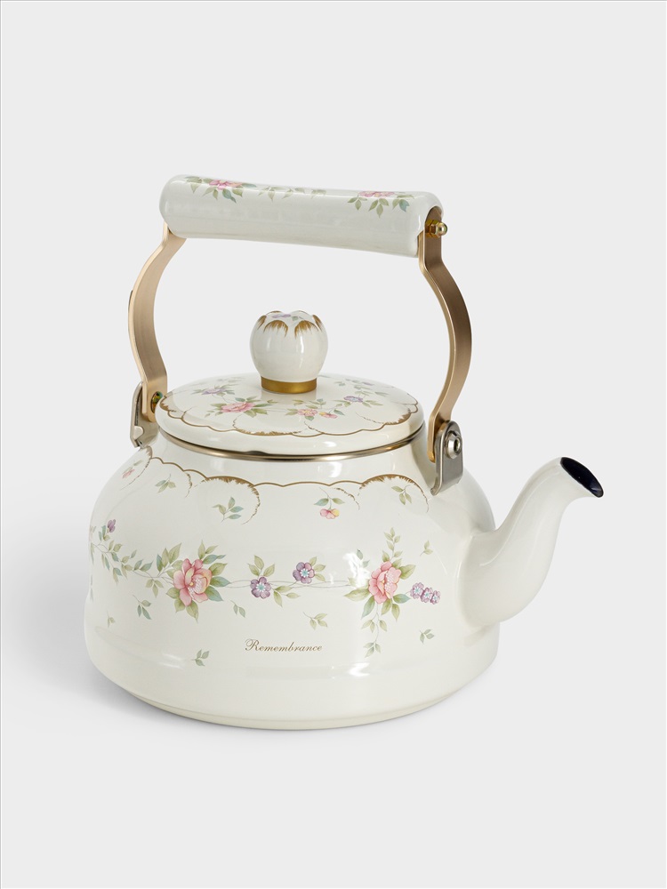 Чайник, 2,3 л, с крышкой, с покрытием, сталь, молочный, Цветы, Remembrance. Материал: сталь эмалированная. Пригодна для всех типов плит. Мыть теплой водой без использования абразивных материалов и в посудомоечной машине. Не использовать в СВ.
