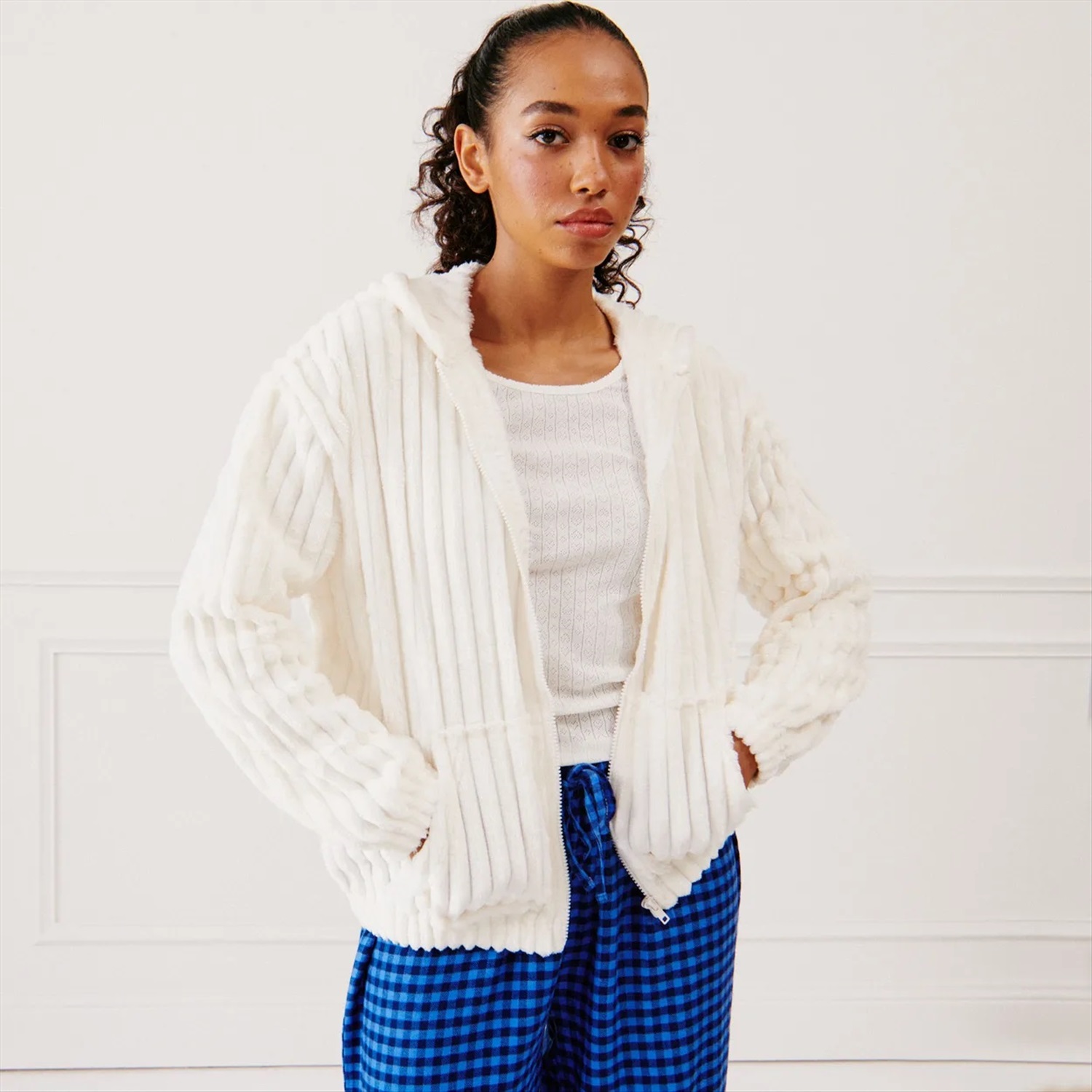 ¿Cómo estar calentita todo el invierno? Es fácil, ¡decídete por nuestra chaqueta polar COOCOONIZ! Esta chaqueta, con capucha, manga larga, bolsillos laterales y cremallera es tan práctica como cómoda. Nos encanta su tejido con efecto en relieve. Puedes combinarla con nuestro pijama BLOSSOMIZ, con sus doz piezas TOP y PANT y, por supuesto, con las BLOSSOMIZ-CHAUSSONS para estar ideal para un invierno frío y acogedor en casa. Además: ¡forma parte de nuestra gama We Care!
